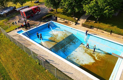 Erfreulicherweise wurde von Seiten der Stadtverwaltung beschlossen, dieses Jahr das Freibad in Buhlbronn zu eröffnen. Für die Feuerwehrabteilung Buhlbronn war es daher selbstverständlich, wieder bei der Auswinterung und der Reinigung des Beckens zu unterstützen.