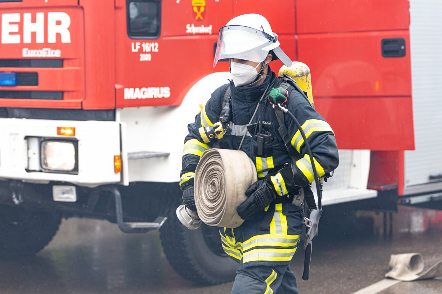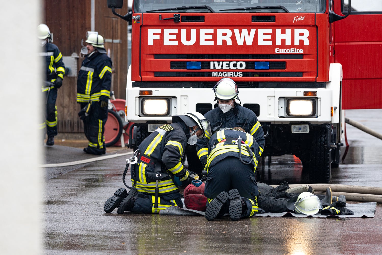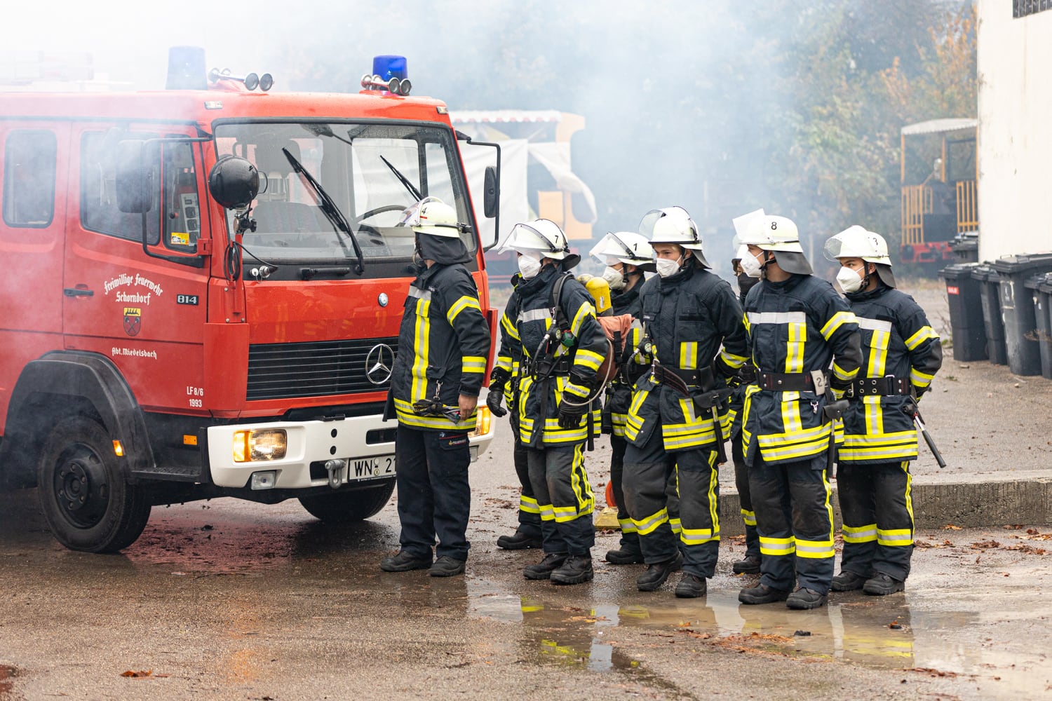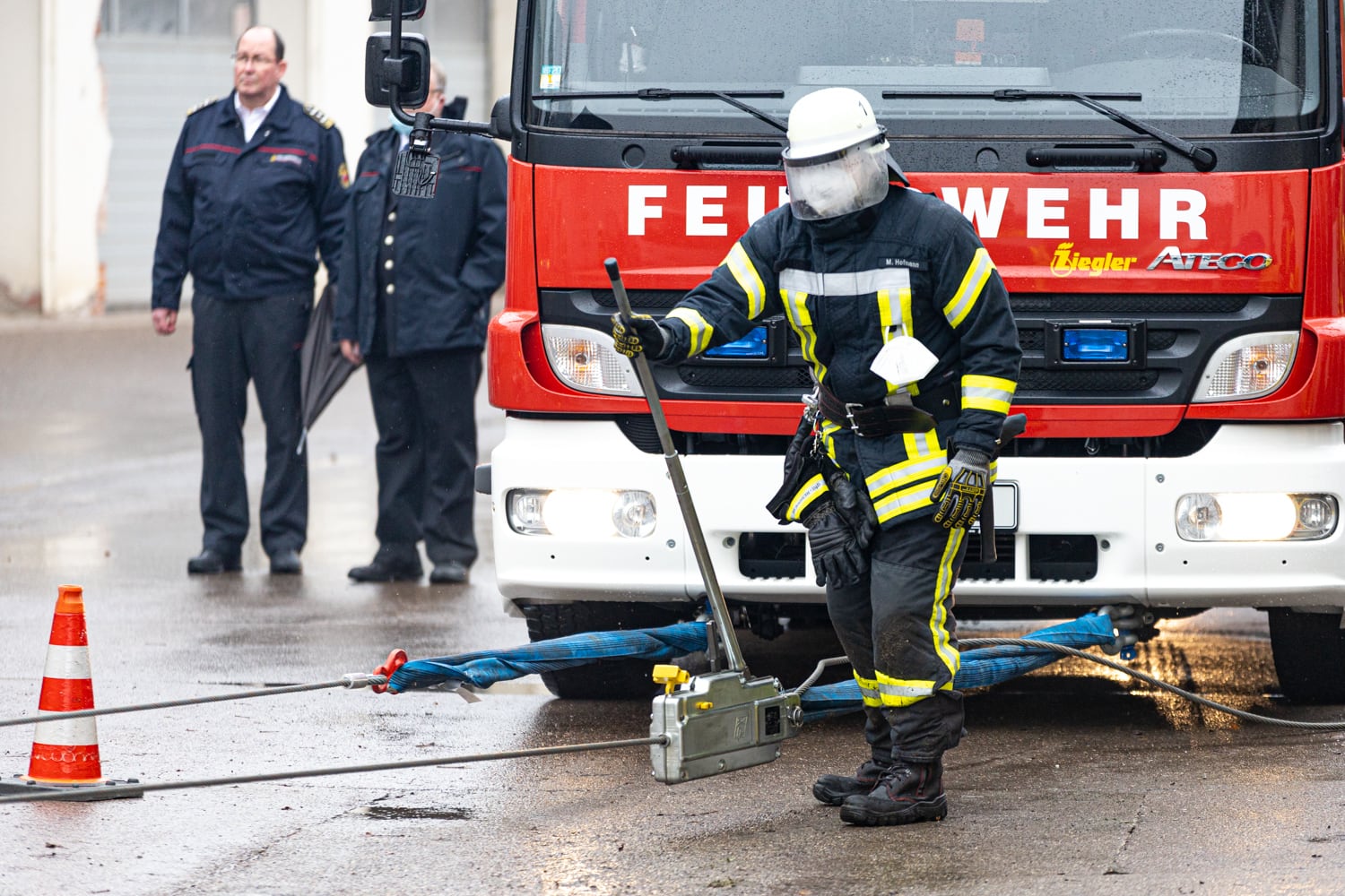 Die Mannschaft des ersten Löschgruppenfahrzeuges konnte den Fahrer innerhalb kürzester Zeit aus dem verunfallten Fahrzeug retten und einen Schaumangriff zum Ablöschen des Brandes vornehmen. Ein weiteres Fahrzeug übernahm eine Riegelstellung, um ein Übergreifen des Feuers auf den Dachbereich zu verhindern und ging über eine tragbare Leiter in das erste Obergeschoss zur Brandbekämpfung vor. Parallel wurde das Fahrzeug mittels Mehrzweckzug vom Gebäude entfernt. Alle gestellten Aufgaben konnten unter den wachsamen Augen der Ausbilder und Zuschauer zur vollsten Zufriedenheit abgearbeitet werden. "Die Abschlussübung hat gezeigt, dass die Teilnehmerinnen und Teilnehmer nun bereit für den Einsatzdienst sind", so Kommandant Jürgen Bruckner. "Es freut mich außerdem sehr, dass so viele Schorndorfer Bürgerinnen und Bürger für dieses wichtige Ehrenamt bereit sind und sich neben Familie und Beruf für die Sicherheit der Schorndorfer Bevölkerung engagieren."