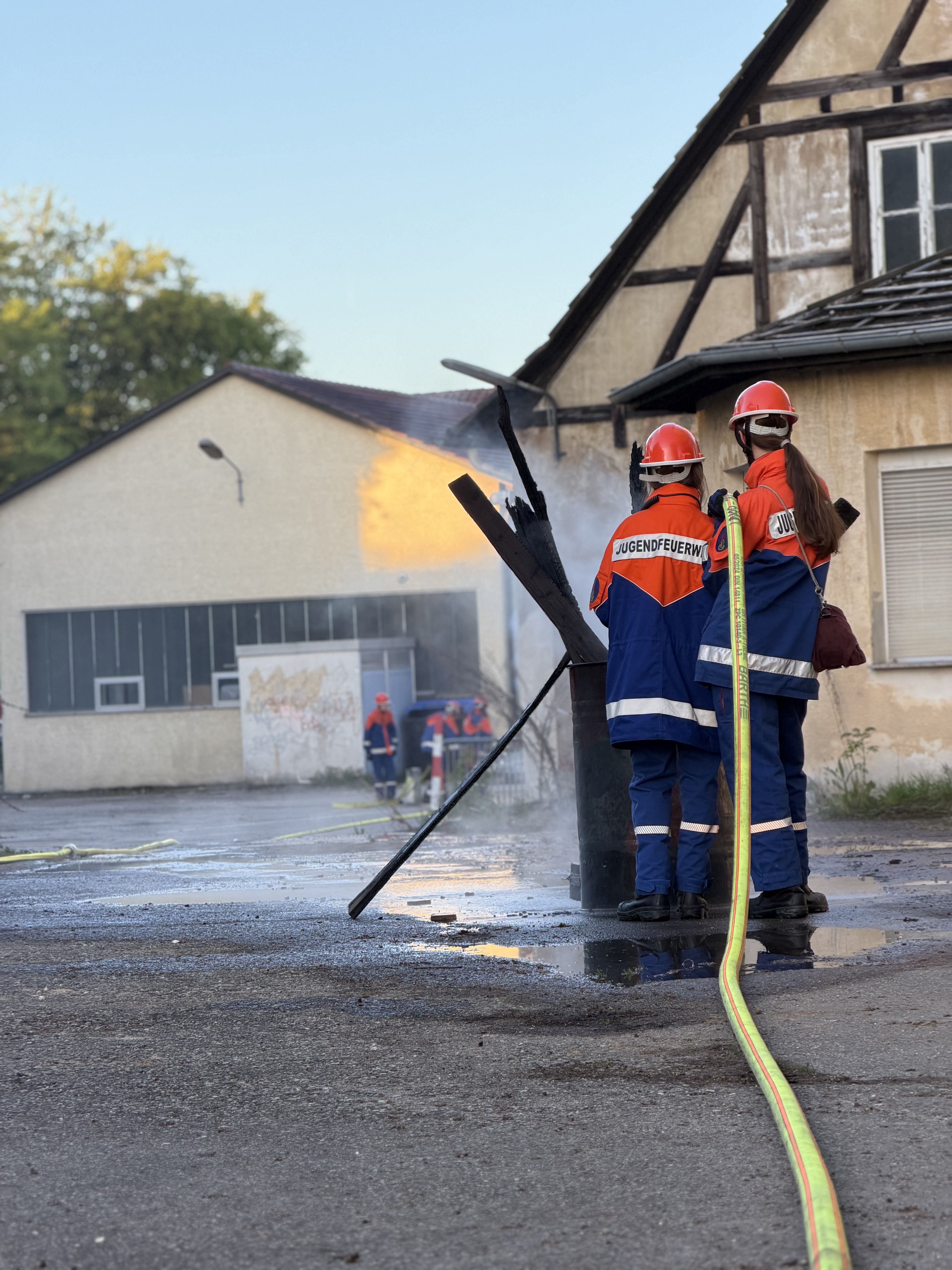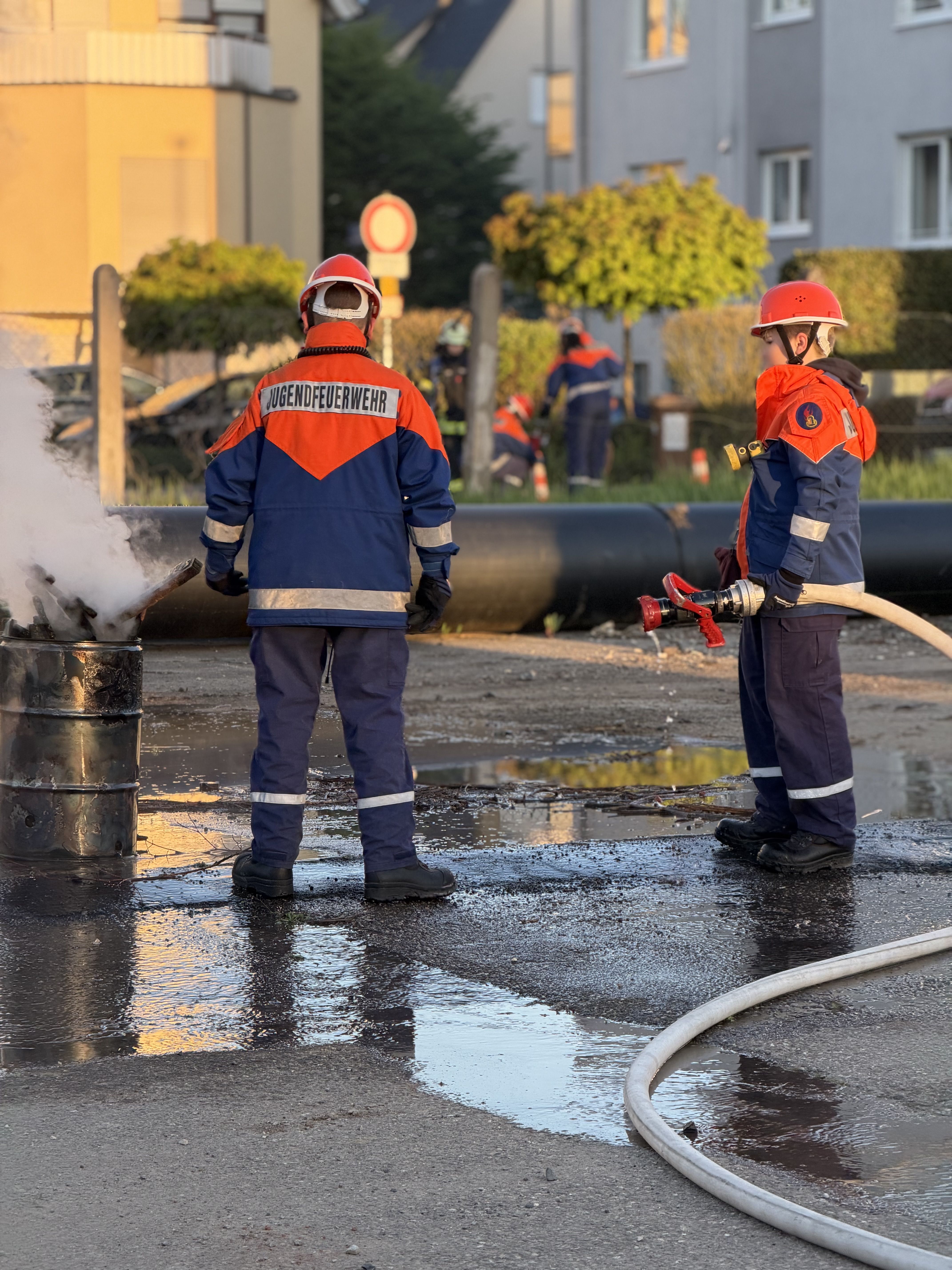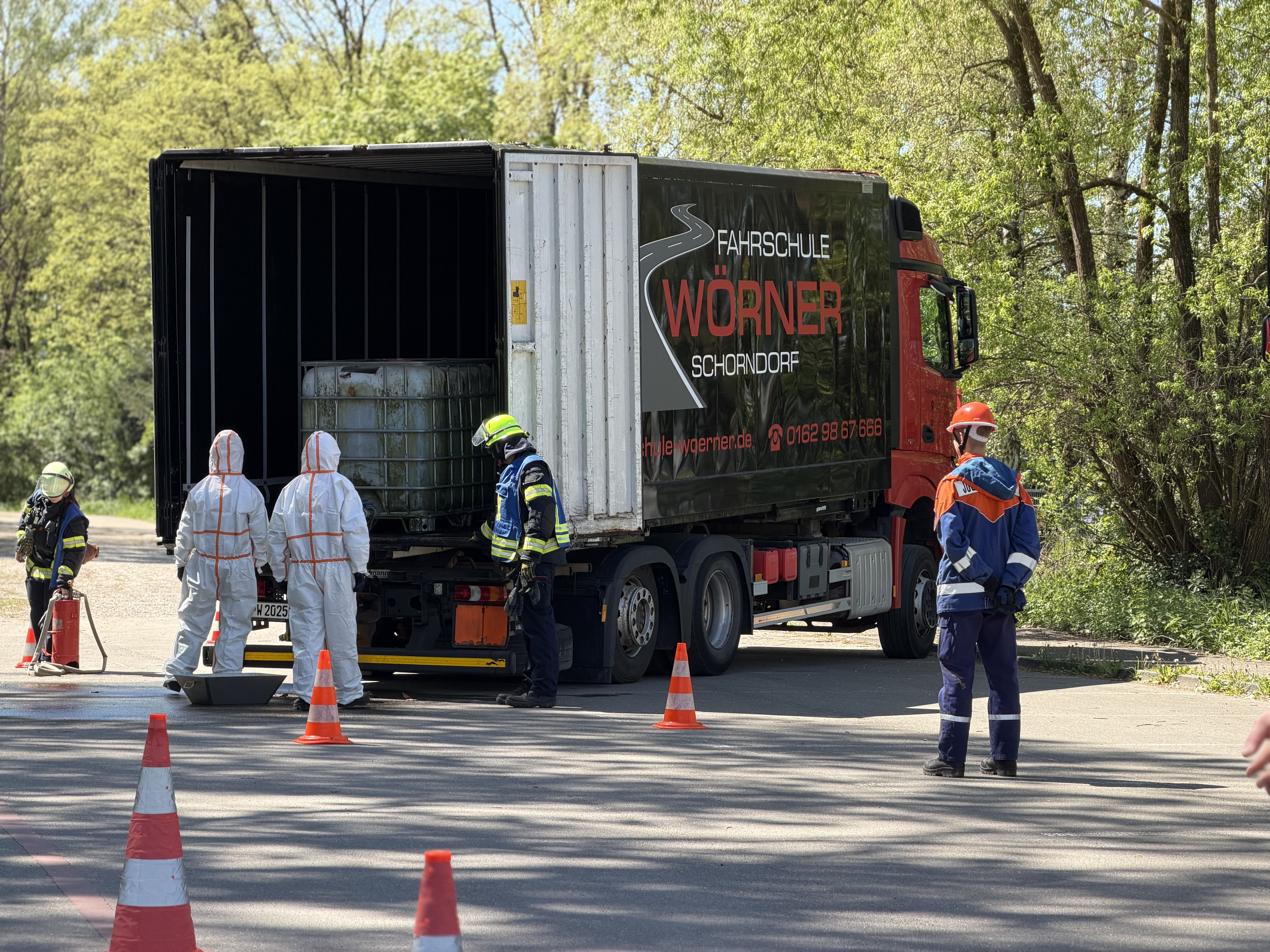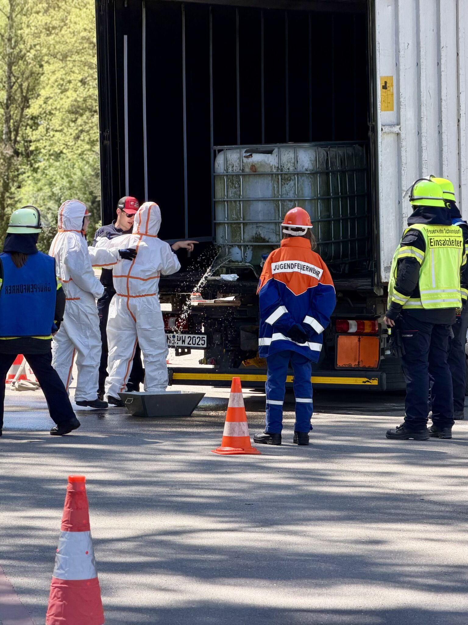 Ein weiterer Einsatz war ein Hüttenbrand gegen 0:30 Uhr, bei dem schnelles Handeln gefragt war, um das Feuer unter Kontrolle zu bringen und weitere Schäden zu vermeiden. Zuvor rückten wir kurz vor dem Essen zu einer 150 m langen Ölspur aus. Außerdem gab es einen Gefahrguteinsatz mit einem LKW, aus dem Salzsäure ausgelaufen war. Dieser Einsatz war besonders anspruchsvoll, da wir hier vorsichtig und mit spezieller Ausrüstung arbeiten mussten. Dabei lernten wir, wie gefährlich solche Stoffe sein können und wie wichtig Schutzmaßnahmen sind.