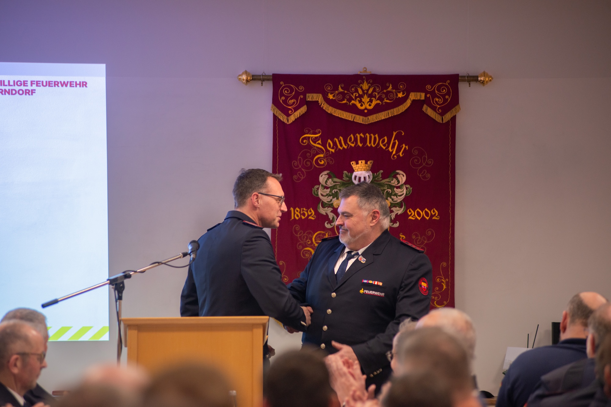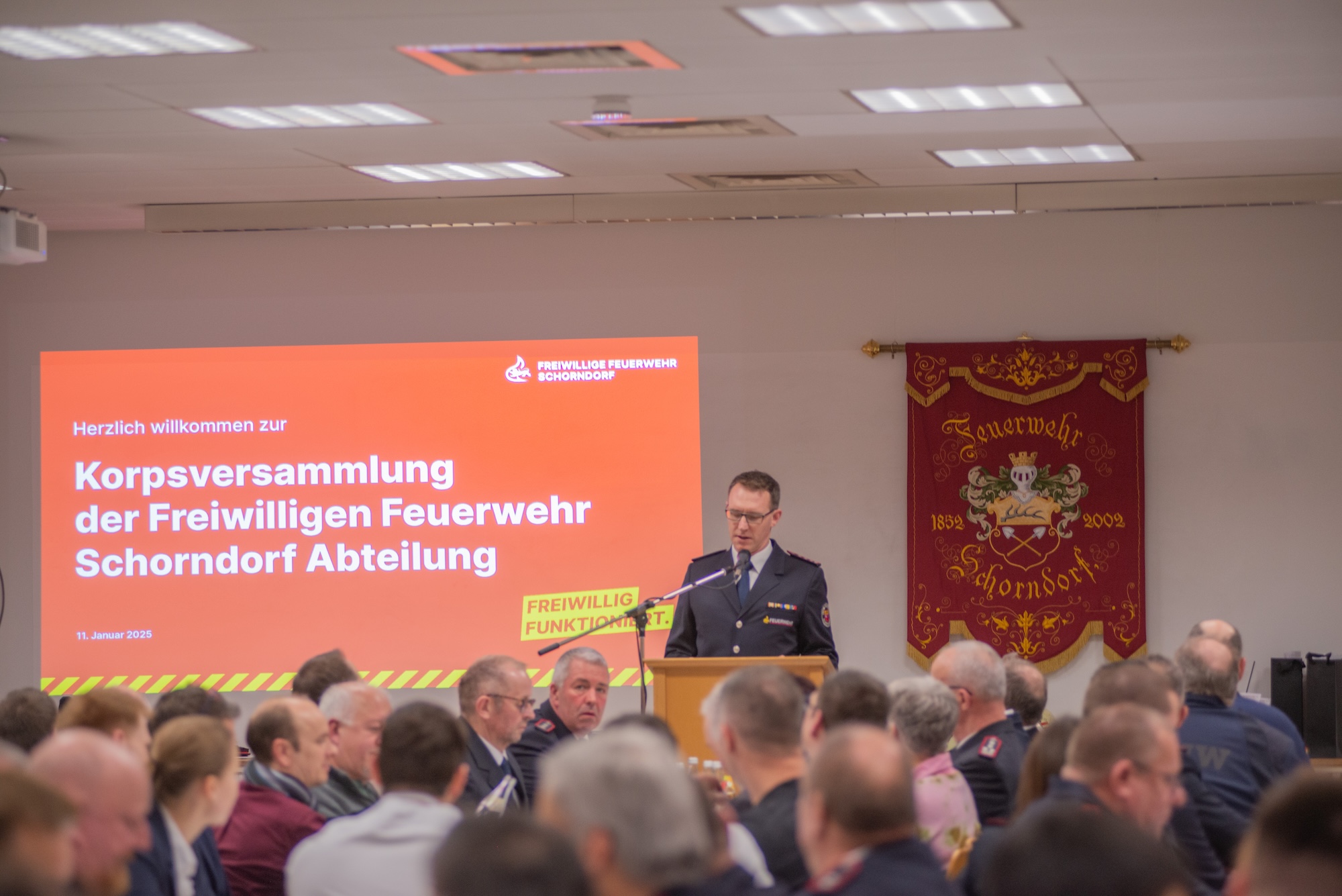 Am Ende seiner Rede zum Tätigkeitsbericht der Freiwilligen Feuerwehr Schorndorf drückte der Abteilungskommandant Peter Lämmle seinen tiefen Dank für die außergewöhnliche Unterstützung aus, die die Feuerwehr im Jahr 2024 erfahren durfte. Besonders hervorzuheben sei die enorme Hilfsbereitschaft aus der Bevölkerung und der Wirtschaft. „Die Unwetterkatastrophen haben die Feuerwehr mehr als je zuvor ins Bewusstsein unserer Mitbürger gerückt. Die Dankbarkeit, die uns schon in den ersten Stunden entgegengebracht wurde, ist beispiellos“, betonte Lämmle. Metzger, Bäcker und Getränkehändler hätten spontan ihre Waren zur Verfügung gestellt, und zahlreiche Mitbürger die Einsatzkräfte mit Getränken, Kuchen und Snacks versorgt. Auch Unternehmen hätten sich nicht zurückgehalten und großzügige Geld- und Sachspenden geleistet. Diese Welle der Solidarität und Unterstützung unterstreicht die enge Verbindung zwischen der Feuerwehr und der Schorndorfer Gemeinschaft.