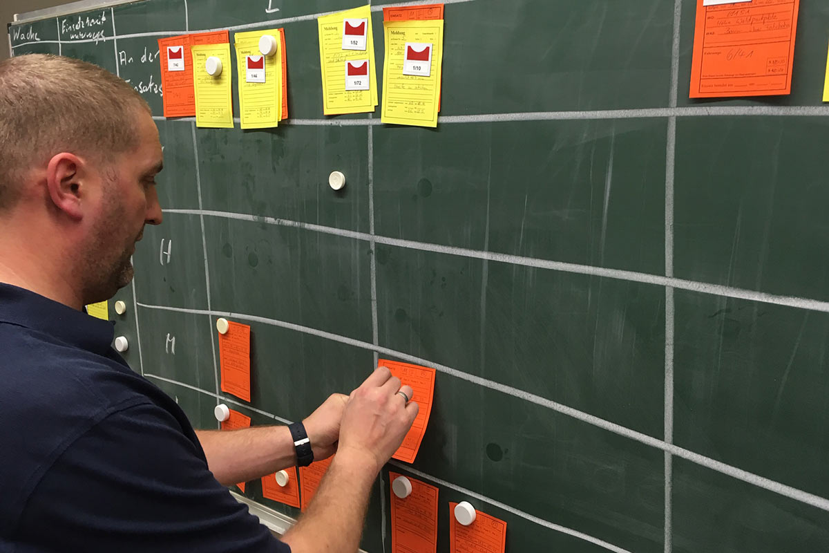 Übungsannahme am Donnerstag war ein lokales Unwetterereignis im Großraum Schorndorf. Was sich anfangs auf einzelne vollgelaufene Keller beschränkte, weitete sich in der Folge auf abgedeckte Dächer, umgestürzte Bäume und verunfallte Fahrzeuge aus. Als Höhepunkt musste die Auslösung einer Brandmeldeanlage abgearbeitet werden. Die besondere Herausforderung war hier, dass alle Fahrzeuge bereits disponiert waren und für das betroffene Objekt eine starke Rauchentwicklung im Keller bestätigt wurde.