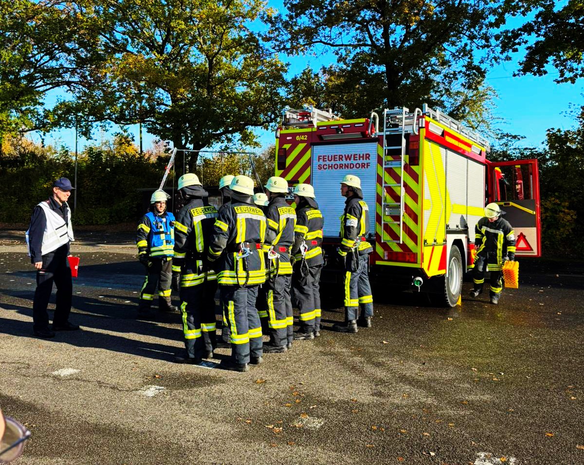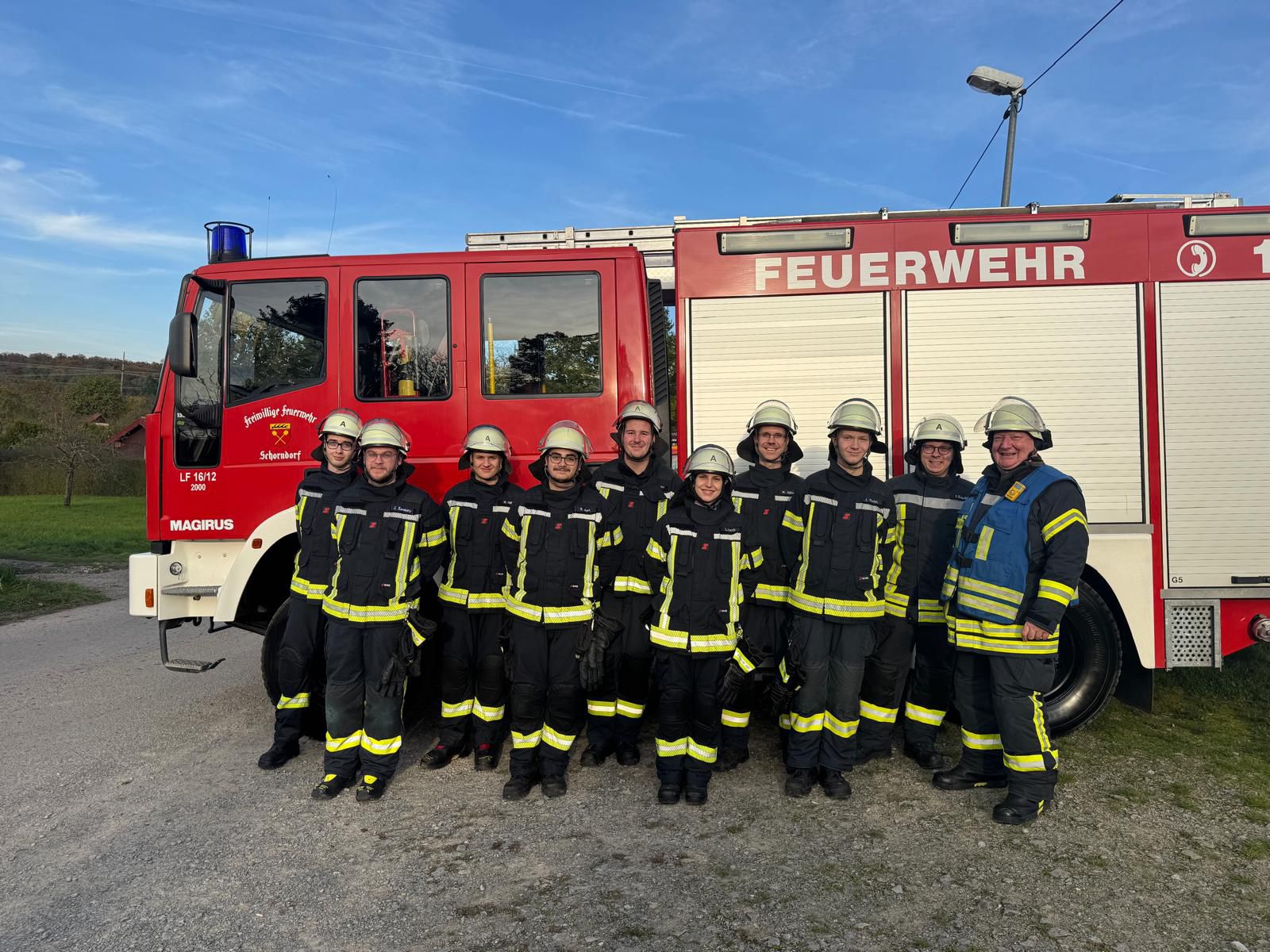 Über mehrere Wochen bereiteten sich zehn Feuerwehrleute aus den Abteilungen Stadt und Weiler, sowie eine Gruppe der Abteilung Schlichten, auf die Abnahme des Leistungsabzeichens in Waiblingen-Bittenfeld vor. Ziel des Abzeichens ist es, neuen Mitgliedern der Einsatzabteilung Sicherheit und Routine im Einsatzfall zu vermitteln. Die Prüfung umfasst einen standardisierten Löschangriff mit Menschenrettung, wobei die Kameradinnen und Kameraden alle Abläufe mit spezieller Ausrüstung einwandfrei beherrschen müssen - und das unter Zeitdruck. Die Positionen in der Gruppe werden vor der Abnahme ausgelost.