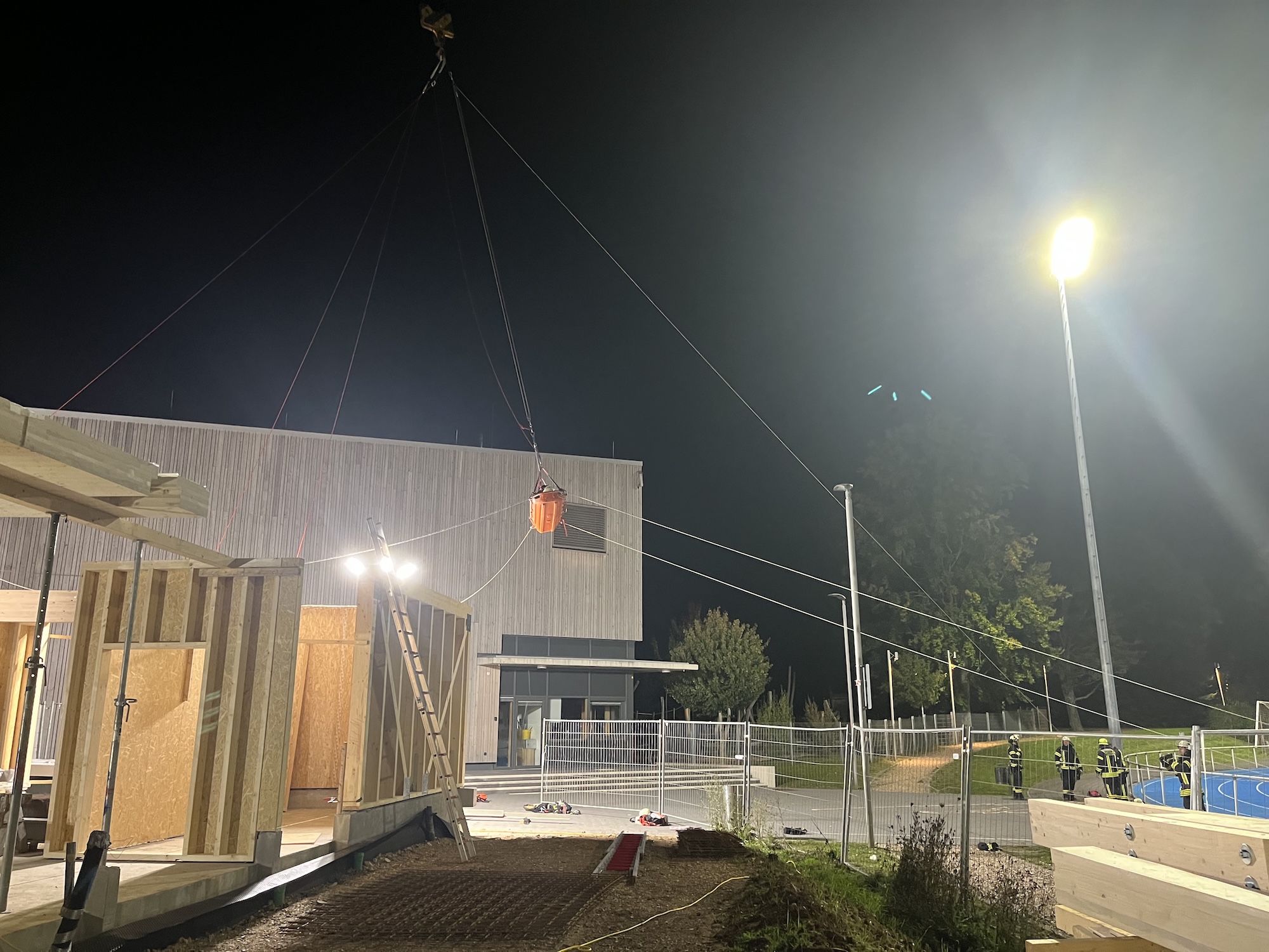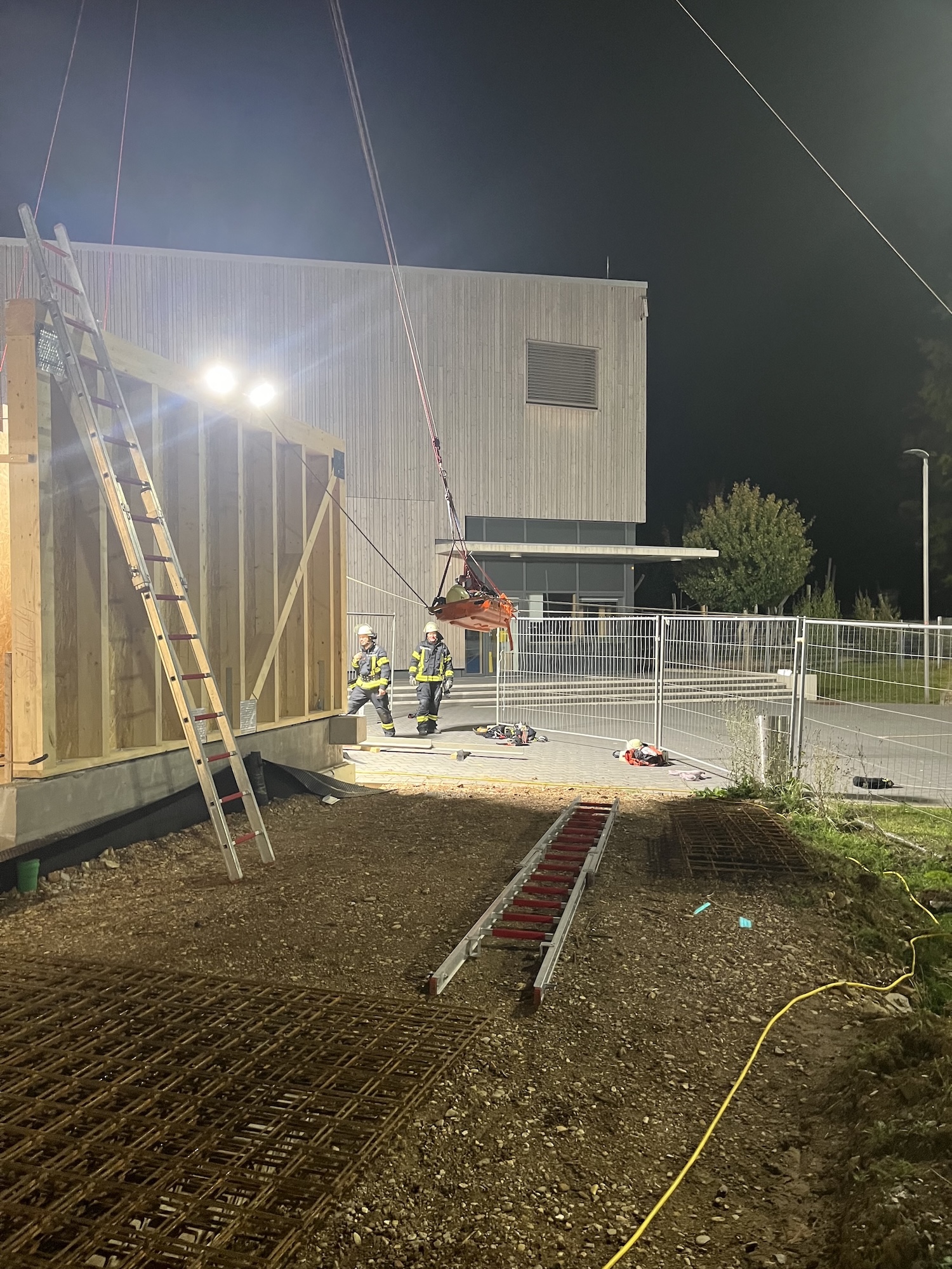 Im Mittelpunkt stand die realistische Vorbereitung auf den Ernstfall: die Rettung von Personen aus verschiedenen Höhen. Dazu nutzten die Einsatzkräfte sowohl das Gerüst als auch das Dach der Baustelle. Mit unterschiedlichen Methoden wie Toprope, Schiefer Ebene und Flaschenzug wurden verschiedene Rettungsszenarien praktisch erprobt.