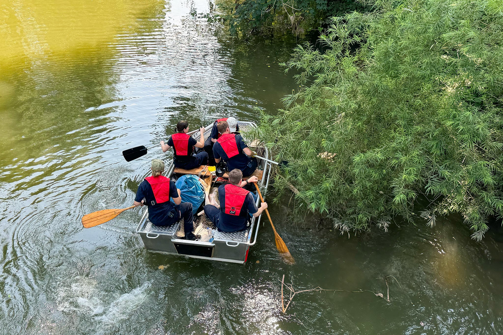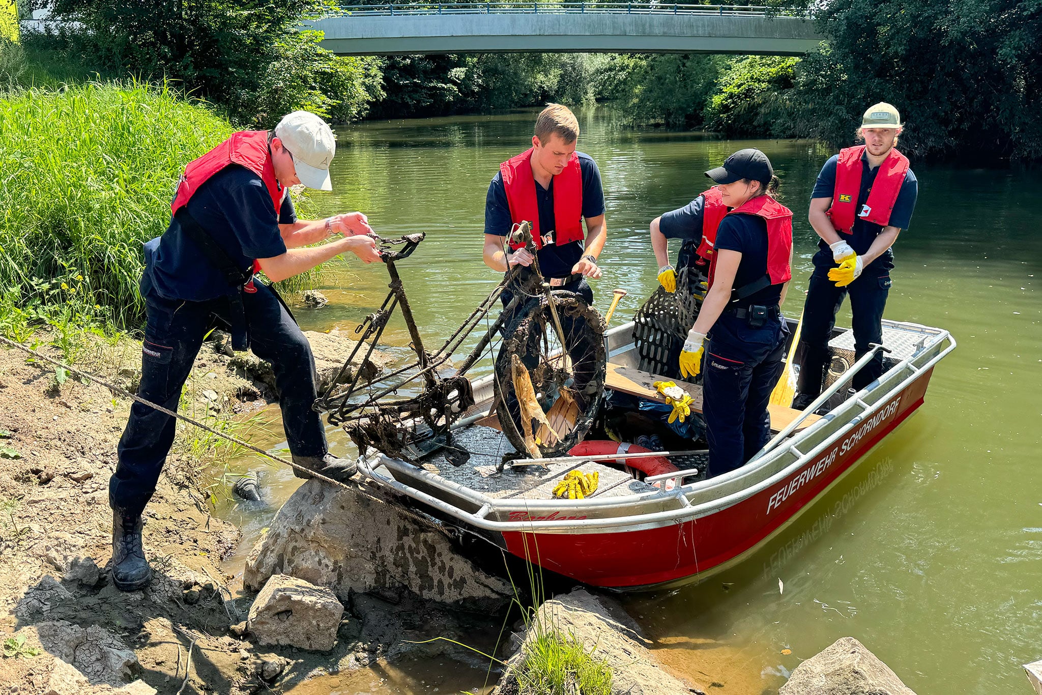 Gemeinsam mit zahlreichen freiwilligen Helferinnen und Helfern wurde säckeweise Müll, Getränkekisten, Reifen und sonstiger Müll gesammelt. Die Feuerwehr unterstützte unter anderem mit zwei Booten in der Kernstadt, in Haubersbronn und Schornbach.