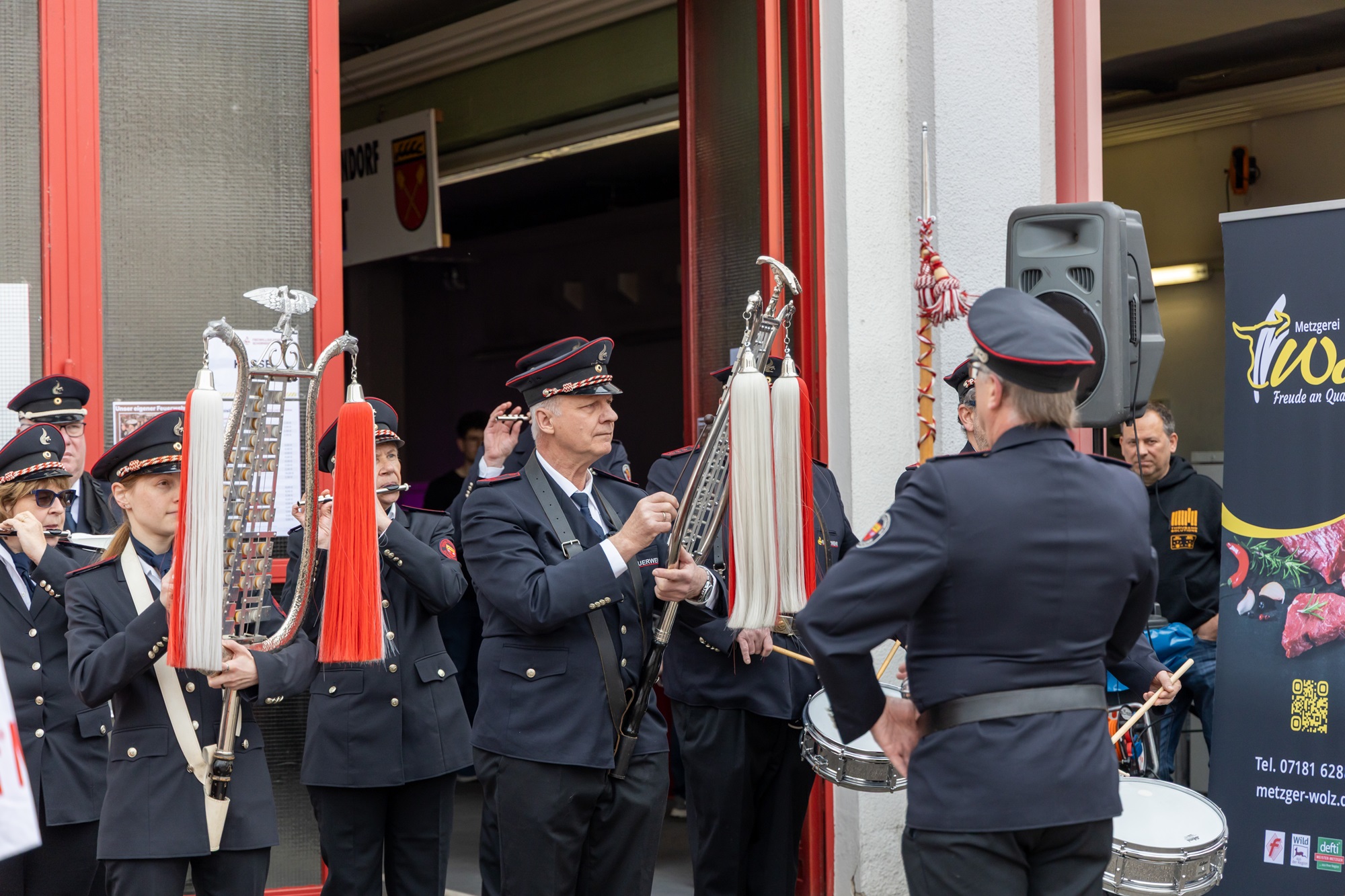 Für das leibliche Wohl sorgten die Mitglieder der Einsatzabteilung mit einer großen Auswahl an Speisen und Getränken. Neu im Angebot waren in diesem Jahr Falafel sowie der eigens produzierte „Feuerwehrwein“ – ein Weißwein, der in Kooperation mit dem Weingut Escher aus Schwaikheim gekeltert wurde. Besonders dabei: Der Weinberg wird von Mitgliedern der Einsatzabteilung in ihrer Freizeit gepflegt, vom Rebschnitt bis zur Traubenlese. Die Falafel auf Salat ergänzten dieses Jahr das vegetarische Angebot und überzeugten geschmacklich.