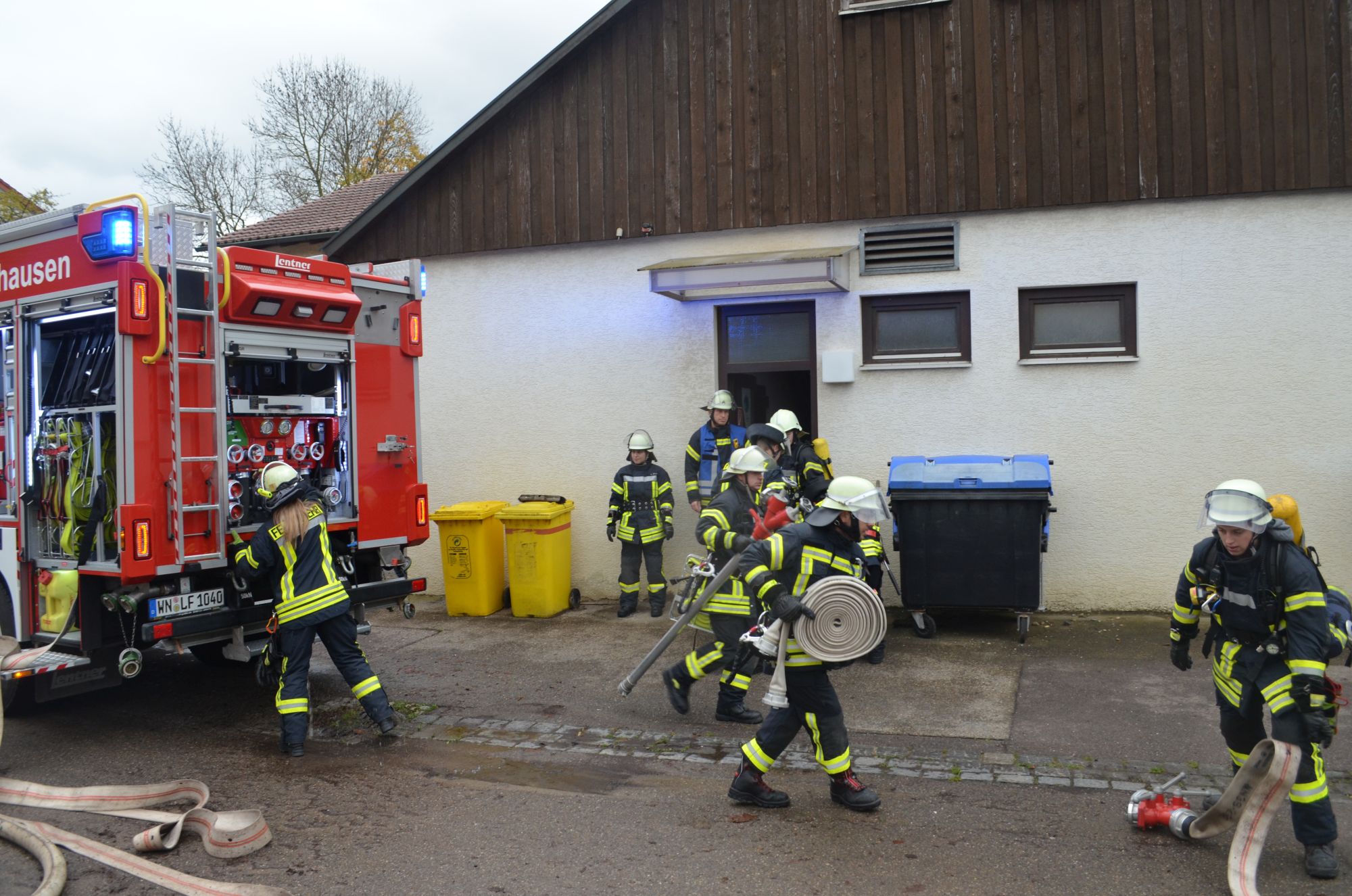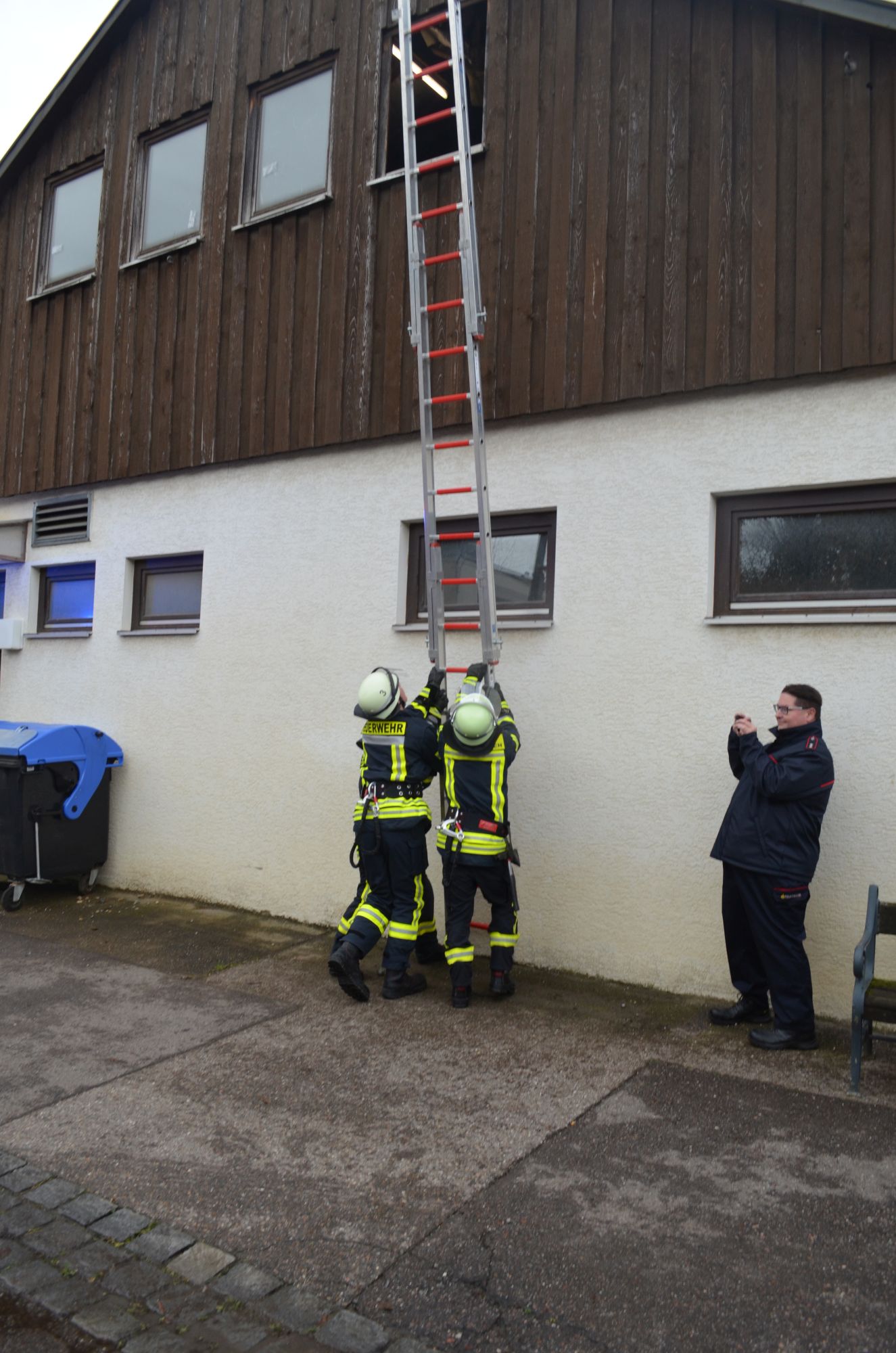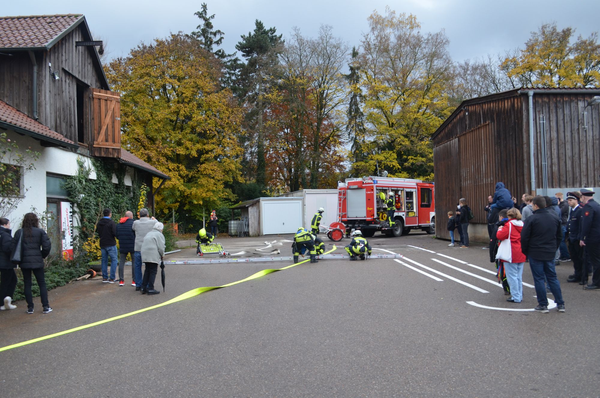 Bei einer groß angelegten Abschlussübung auf dem Gelände des alten Bauhofes in Schorndorf wurde den Feuerwehrfrauen und -männern unter den Augen zahlreicher Zuschauer nochmals alles abverlangt. An mehreren Gebäuden mussten Löschangriffe aufgebaut werden sowie Personen über Steckleitern gerettet werden. Auch dieses komplexe Übungsszenario konnte souverän abgearbeitet werden.