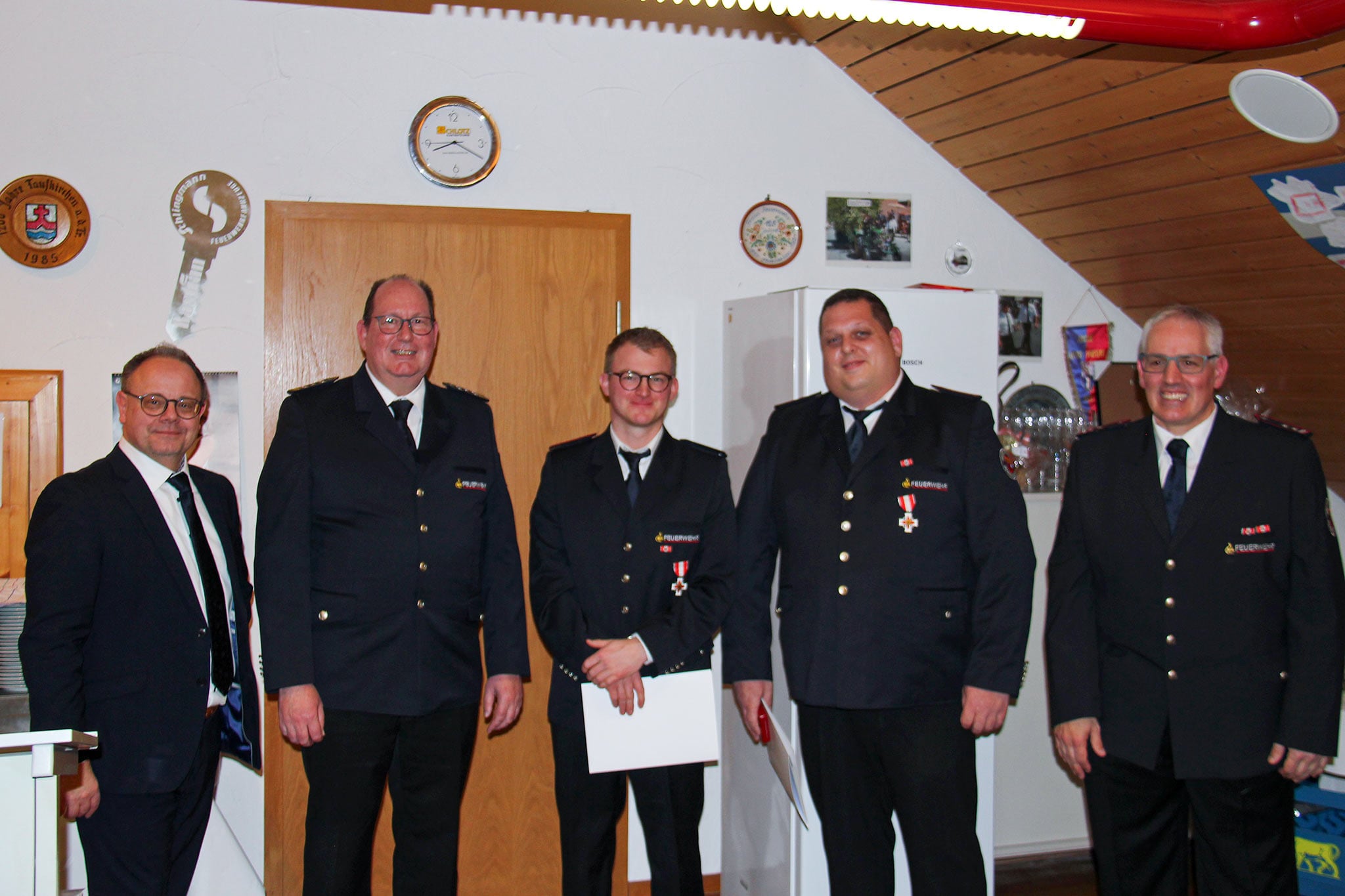 Neben den Angehörigen Kameradinnen und Kameraden der Feuerwehrabteilung Schlichten konnten Oberbürgermeister Bernd Hornikel, Ortsvorsteher Felix Auwärter, Ehrenkommandant Jost Rube, Stabsleiter und Gesamtkommandant Jürgen Bruckner, Stellvertretender Kommandant Andreas Bihlmaier, Abteilungskommandant Peter Lämmle, Abteilungskommandant der Nachbarfeuerwehr Holger Bischoff begrüßt werden.