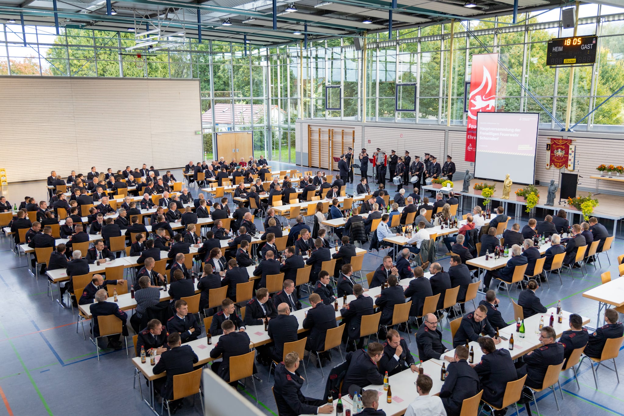 »Während wir mit dunkler Schokolade und einem Glas Lemberger auf dem Sofa liegen, riskieren Sie für uns Leib und Leben, Tag für Tag und das im Ehrenamt. Unsere Aufgabe ist daher, die Feuerwehr gut auszustatten und die großartige Arbeit in voller Dankbarkeit wertzuschätzen«, dankte CDU-Landtagsabgeordneter Christian Gehring den Ehrenamtlichen in seinem Grußwort. Kreisbrandmeister René Wauro berichtete von der Arbeit der Stabsstelle Brand- und Katastrophenschutz im Landratsamt. »Der Schwerpunkt unserer Arbeit hat sich durch die aktuell laufenden Krisen vom Brandschutz hin zum Katastrophenschutz gewandelt. Corona-Pandemie, Ukraine-Krieg, Flüchtlingskrise und die drohende Gasmangellage – alles gleichzeitig – zeigen einmal mehr, dass auf die Feuerwehr und Blaulichtorganisationen auch in schwierigen Zeiten Verlass ist.« Aktuell wird ein flächendeckendes Sirenennetz zur Warnung der Bevölkerung im Rems-Murr-Kreis geplant und aufgebaut. Dass auf die Feuerwehr zu jeder Zeit Verlass ist bestätigte auch Kreisfeuerwehrverbands-Vorsitzender Markus Kramer. »Feuerwehr ist die einzige kommunale hoheitliche Aufgabe, die im Ehrenamt ausgeführt wird. Die Stadt Schorndorf kann zu Recht stolz auf ihre leistungsfähige Feuerwehr sein«.