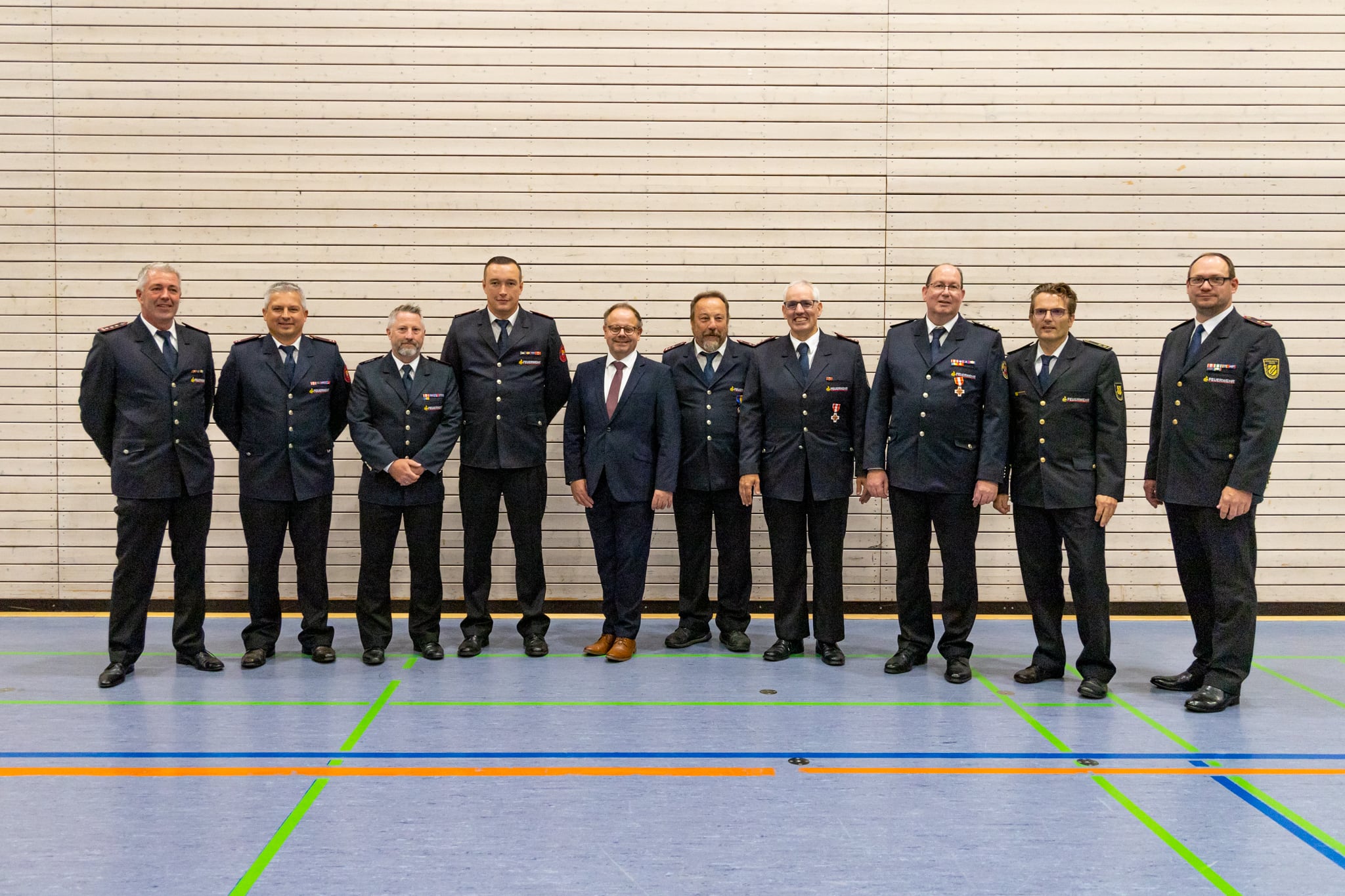 Aufgrund der Teilnahme an den erforderlichen Lehrgängen und der Erfüllung der geforderten Mindestdienstzeit wurden Marcel Schulze und Peter Bord zum Brandmeister sowie Jochen Niemann, Gunter Pfeil und Sven Lülfing zum Oberbrandmeister befördert.