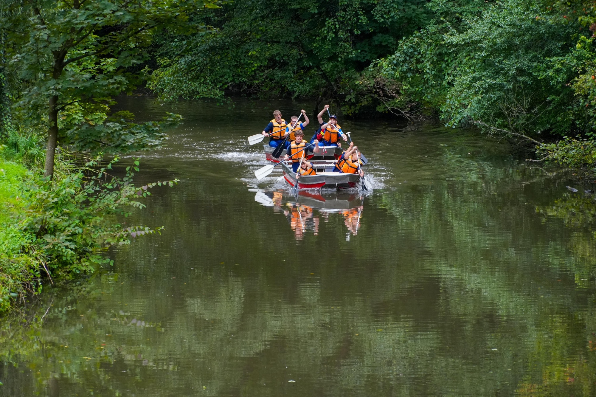 Das Rennen wurde mit zwei Alubooten der Feuerwehr Backnang ausgetragen. Pro Boot paddelten vier Personen eine rund 400 Meter lange Strecke: Nach ca. 200 Metern musste das Boot um eine an einer Brücke befestigte Steckleiter gewendet werden. Auf dem Rückweg wartete das Ziel – und dort galt es, einen über den Fluss gespannten Kanister abzuklatschen.