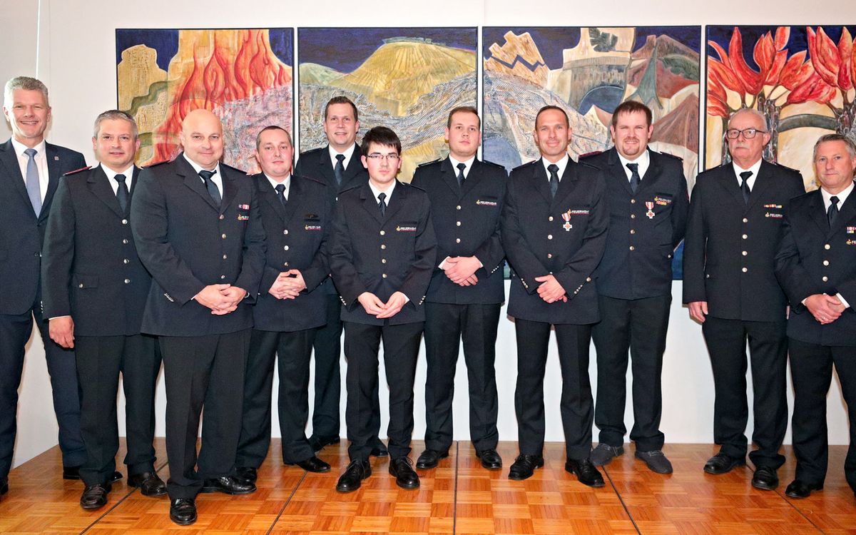 Im Anschluss wurden die Beförderungen vorgenommen. Benjamin Hein wurde zum Feuerwehrmann, Jochen Holderle, Johannes Neuwirth und Tim Schmeißer zum Oberfeuerwehrmann, Michael Waldner zum Löschmeister und Peter Bord zum Hauptlöschmeister befördert.