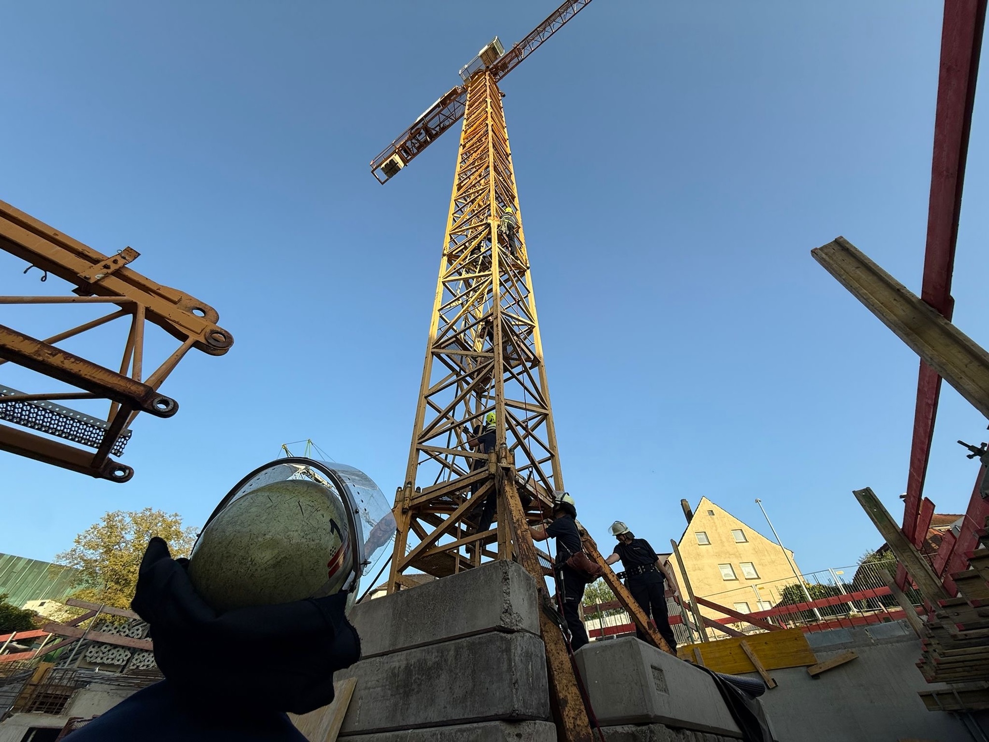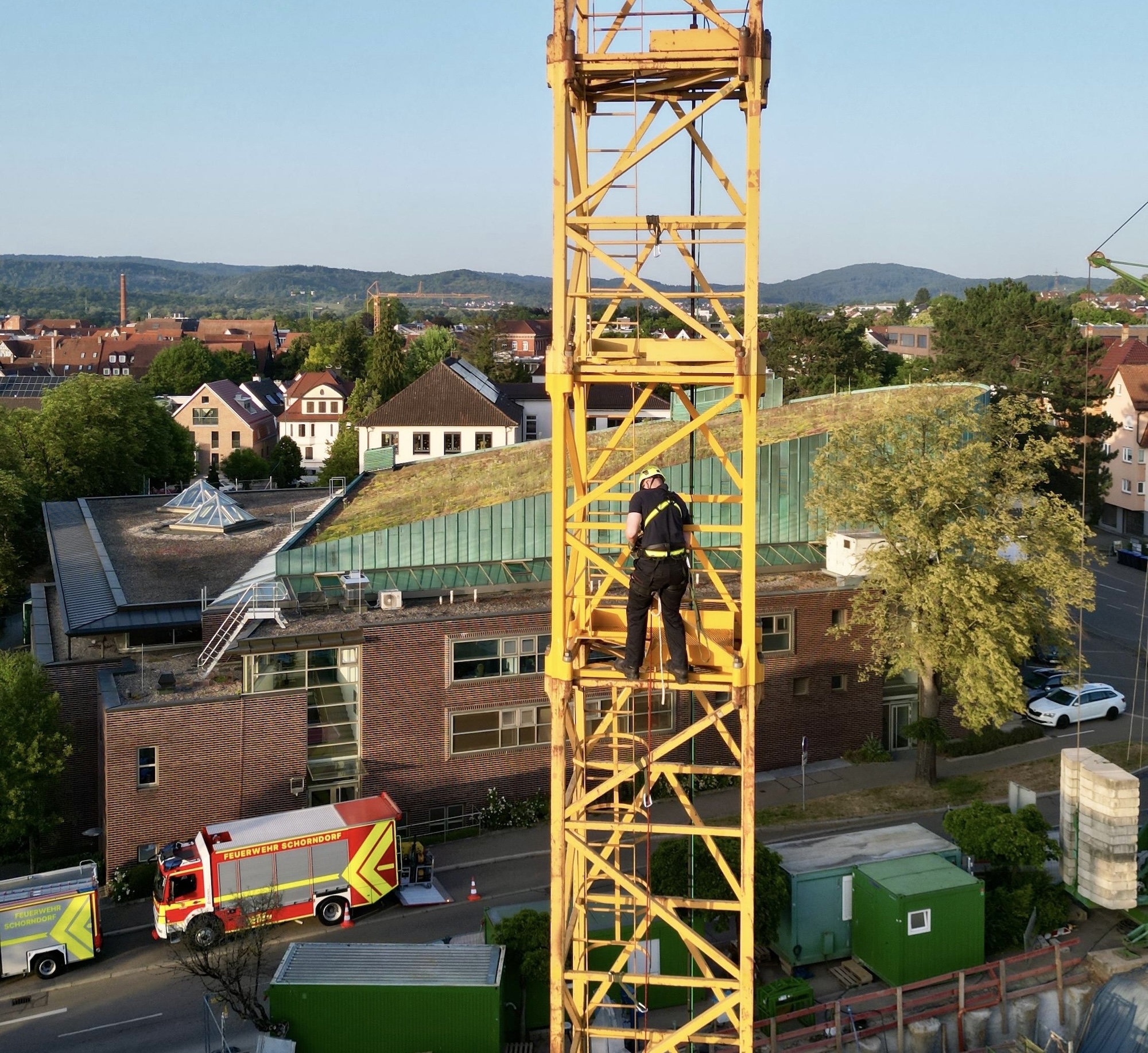 Zeitgleich trainierte eine zweite Gruppe den gesicherten Vorstieg am Baukran. Hier lag der Fokus auf dem sicheren Bewegen in der Höhe, dem richtigen Umgang mit persönlicher Schutzausrüstung sowie der Kommunikation im Team.