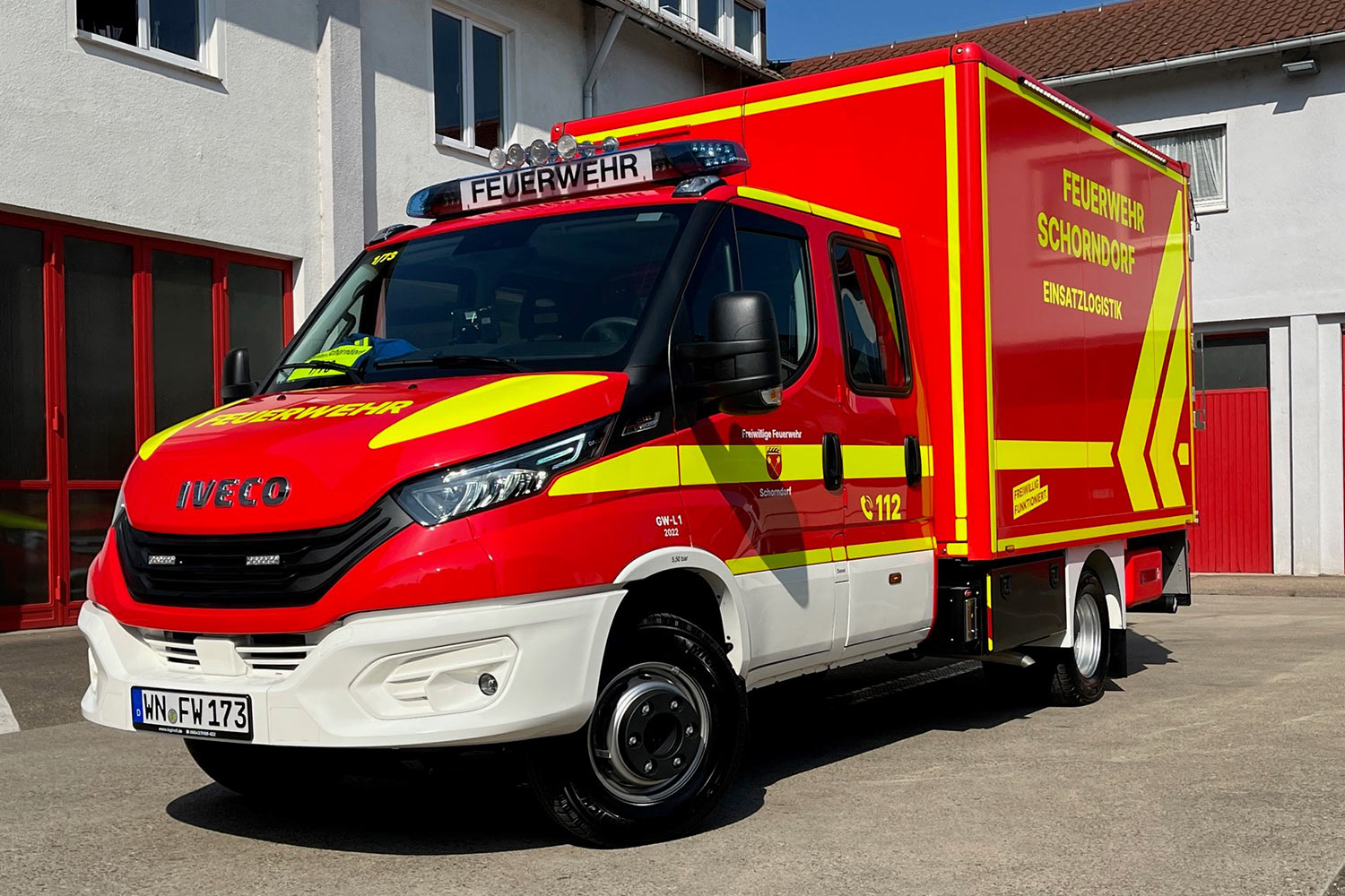 Nach einem umfangreichen Ausschreibungsverfahren konnte der Gerätewagen Logistik 1 im Juli 2021 bestellt werden. Dazwischen lagen zahlreiche virtuelle Termine, Besprechungen und letztlich die Abnahme in Präsenz.