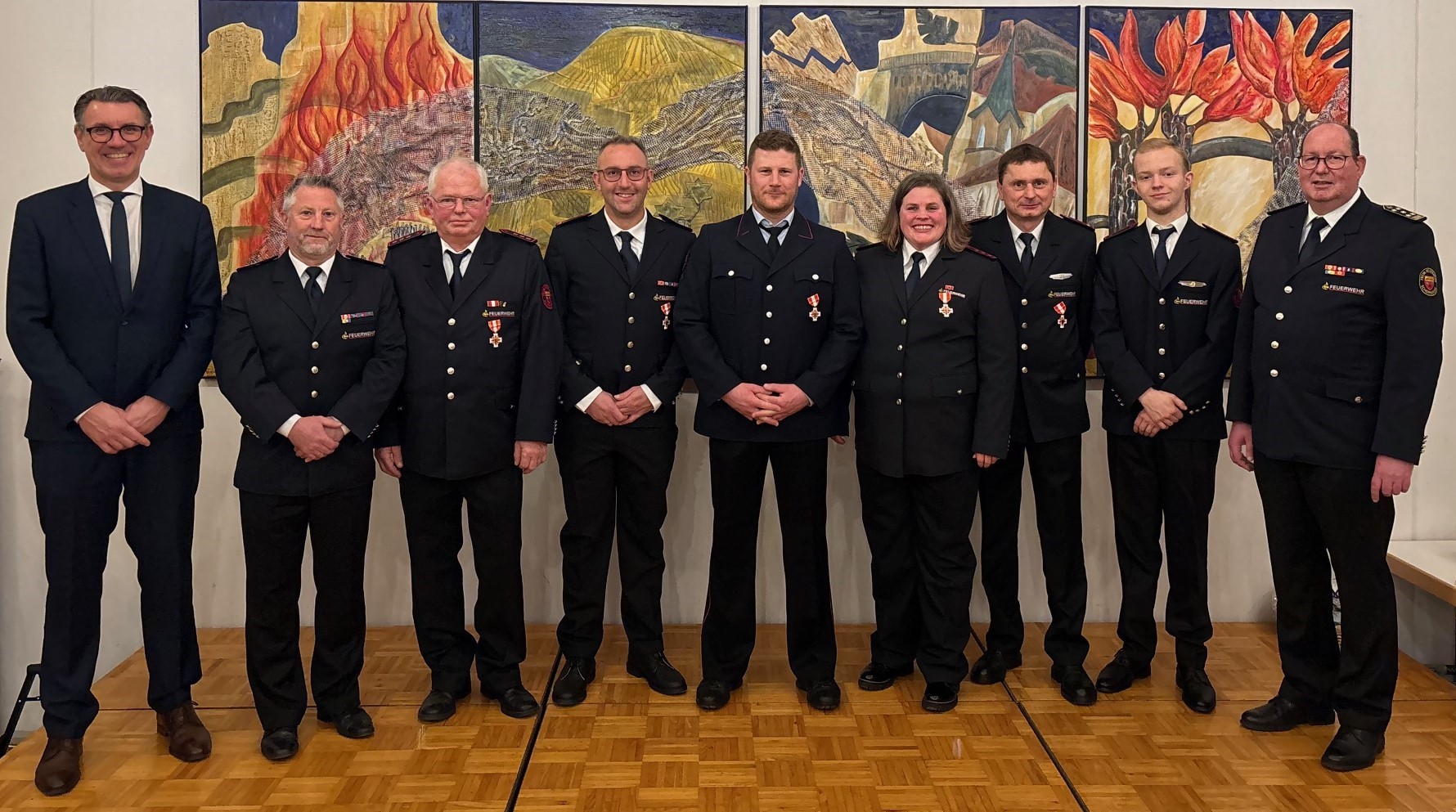 Für 40 Jahre aktiven Feuerwehrdienst wurde Jörg Schwarz geehrt. Sie alle wurden für ihren langjährigen Dienst zum Wohle der Weilermer Bevölkerung mit den Ehrenzeichen in Bronze, Silber und Gold ausgezeichnet.