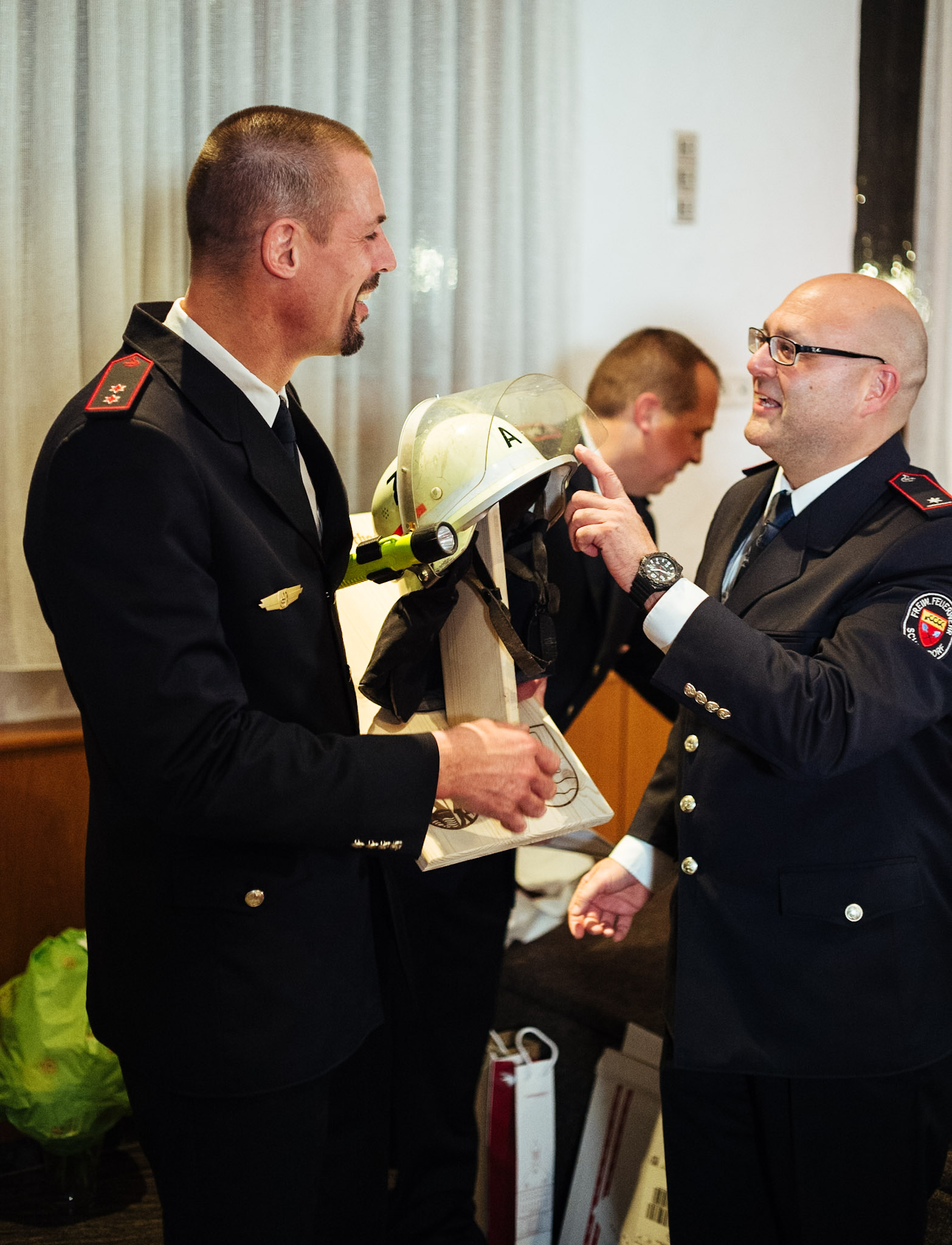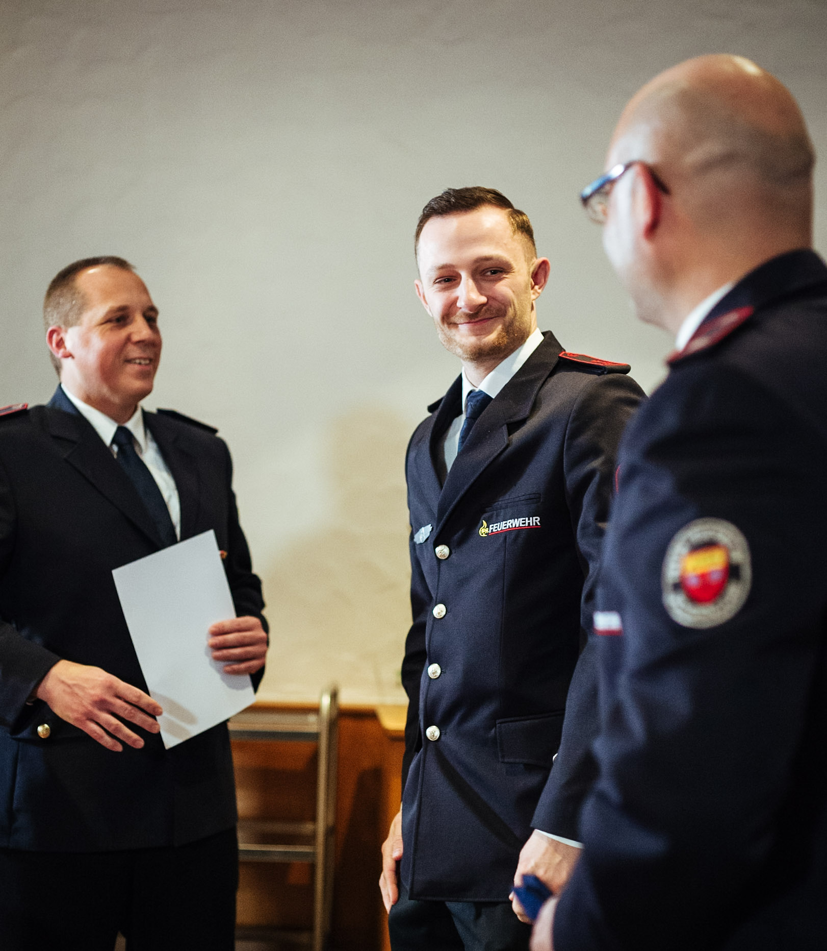 Sarah Kluge, Sabrina Lex und Paul Püschl wurden per Handschlag in die aktive Wehr aufgenommen. Den drei Aufnahmen steht der Austritt von Uwe Krauss entgegen. Er wird zum Jahresende die Feuerwehr verlassen und ins Allgäu ziehen. Wir wünschen ihm auf seinem weiteren Weg alles Gute. Somit besteht die Wehr aus 52 aktiven Einsatzkräften.