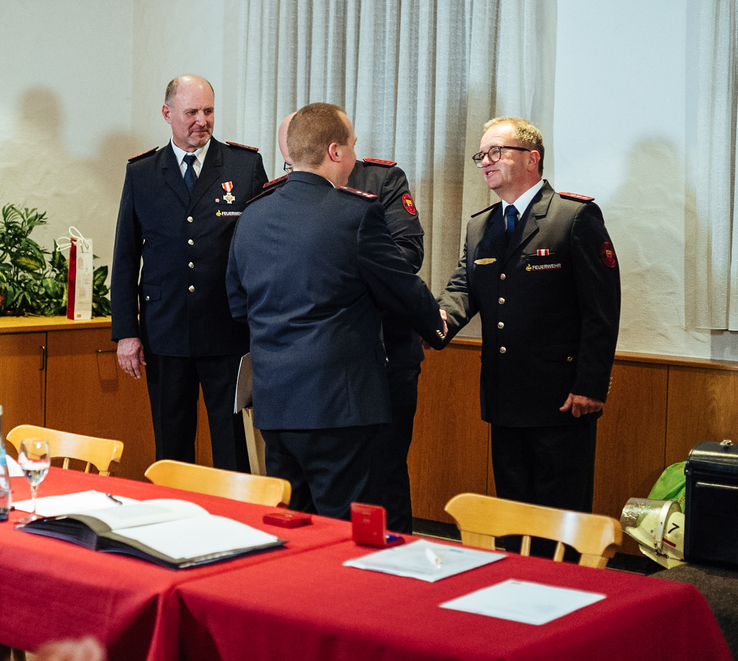 Markus Karoly wurde für 15 Jahre, Jochen Ulmer und Jürgen Walter für 25 Jahre und Bernhard Geiger für 40 Jahre aktiver Dienst, sowie Peter Rost für 50 jährige Zugehörigkeit zur Feuerwehrabteilung geehrt.