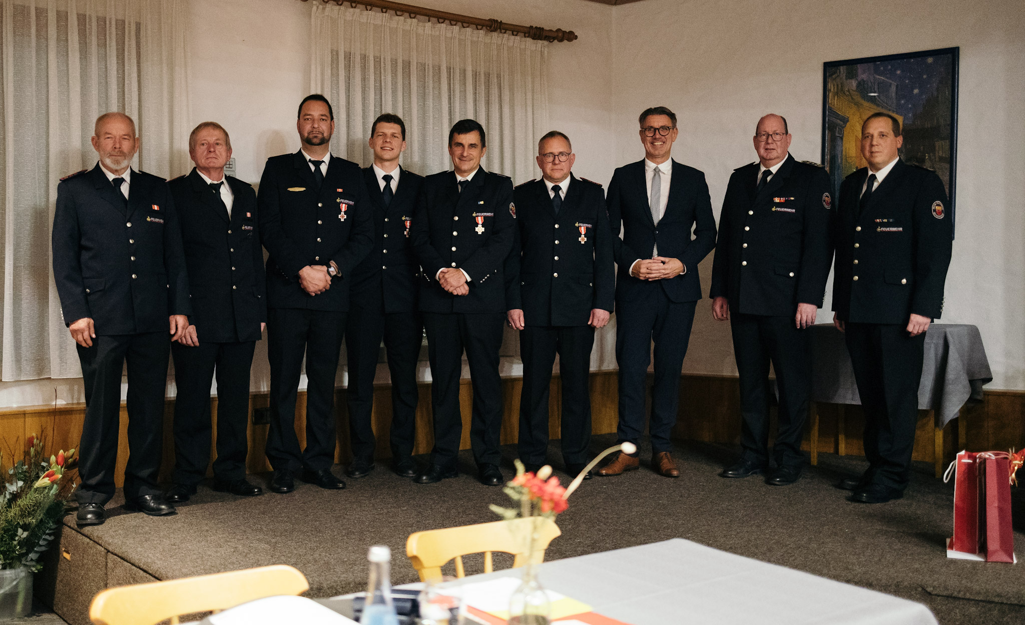 Felix Deimer wurde für 15 Jahre, Nico Kiesel für 25 Jahre, Markus Hoppe und Ralf Lerch für 40 Jahre aktiver Dienst, sowie Manfred Hof und Heinz Rapp für 50 jährige Zugehörigkeit zur Feuerwehrabteilung geehrt.