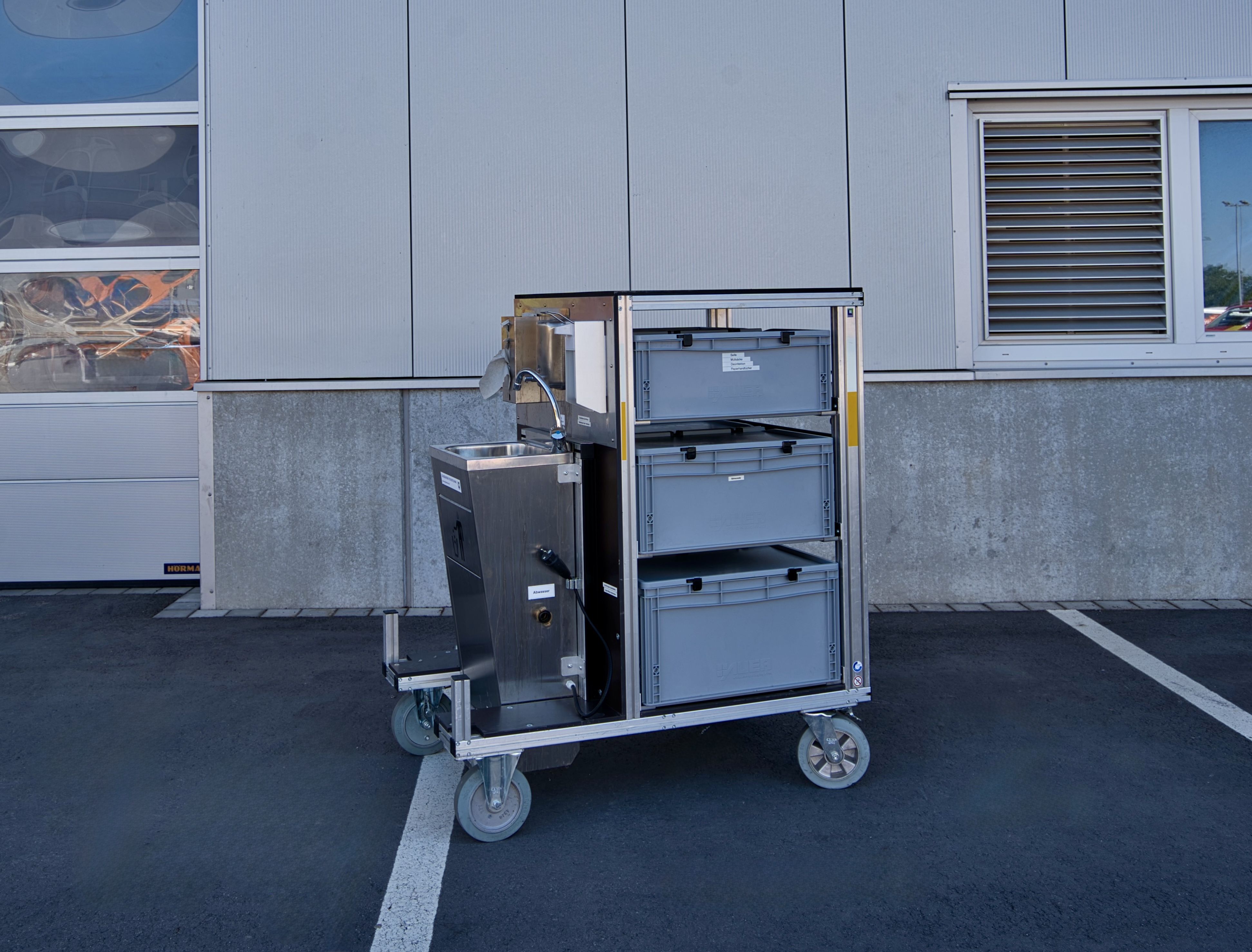 - RC 8/03 & 8/04 – Hygiene/Ersatzkleidung unterstützen Einsatzstellenhygiene mit 18 Sätzen Ersatzkleidung (Jacken/Hosen) für kontaminierte Einsatzkräfte.