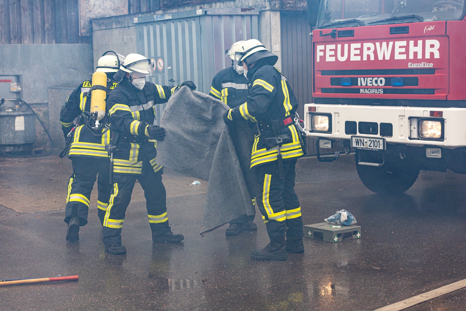 Die Mannschaft des ersten Löschgruppenfahrzeuges konnte den Fahrer innerhalb kürzester Zeit aus dem verunfallten Fahrzeug retten und einen Schaumangriff zum Ablöschen des Brandes vornehmen. Ein weiteres Fahrzeug übernahm eine Riegelstellung, um ein Übergreifen des Feuers auf den Dachbereich zu verhindern und ging über eine tragbare Leiter in das erste Obergeschoss zur Brandbekämpfung vor. Parallel wurde das Fahrzeug mittels Mehrzweckzug vom Gebäude entfernt. Alle gestellten Aufgaben konnten unter den wachsamen Augen der Ausbilder und Zuschauer zur vollsten Zufriedenheit abgearbeitet werden. "Die Abschlussübung hat gezeigt, dass die Teilnehmerinnen und Teilnehmer nun bereit für den Einsatzdienst sind", so Kommandant Jürgen Bruckner. "Es freut mich außerdem sehr, dass so viele Schorndorfer Bürgerinnen und Bürger für dieses wichtige Ehrenamt bereit sind und sich neben Familie und Beruf für die Sicherheit der Schorndorfer Bevölkerung engagieren."