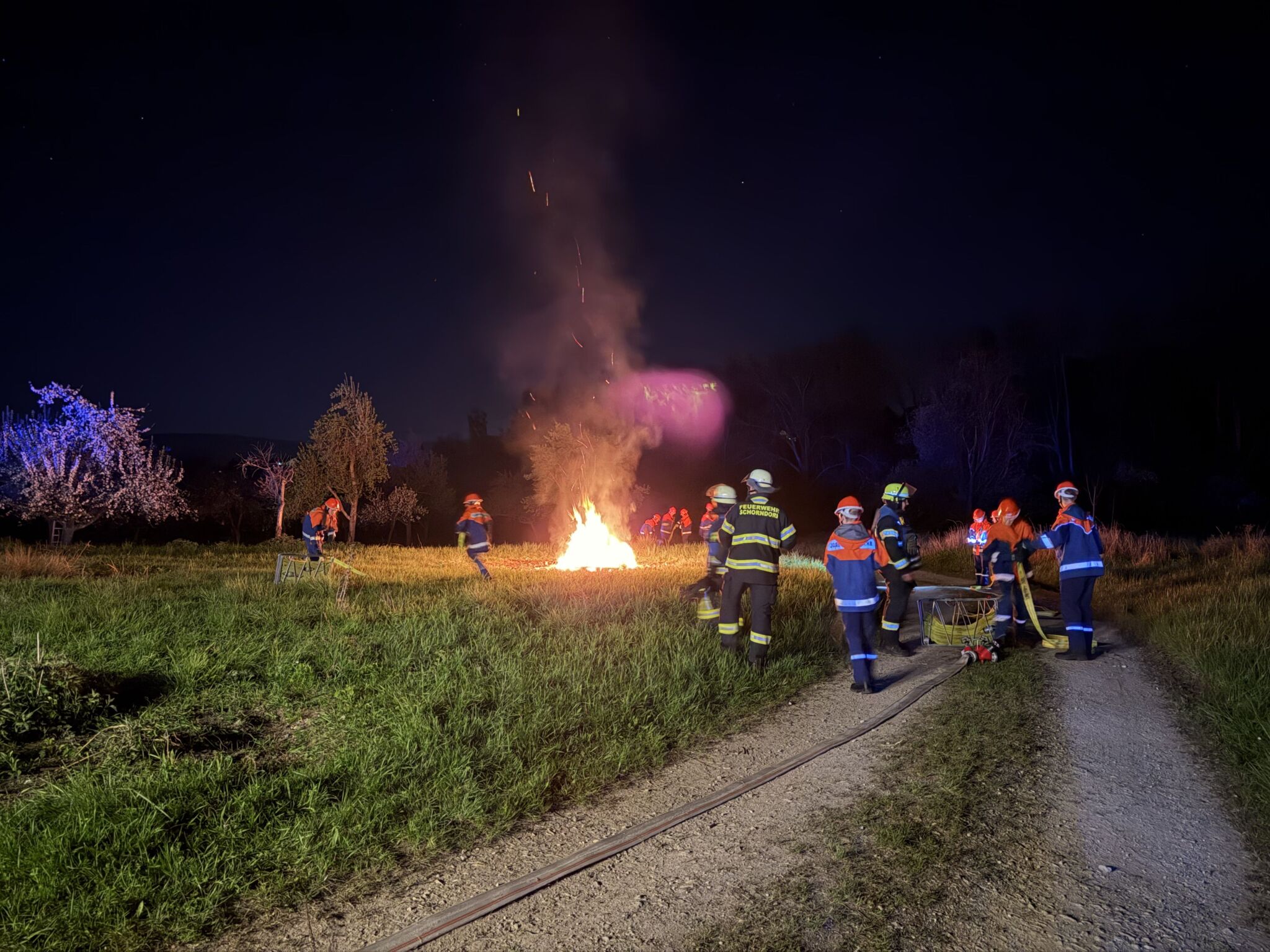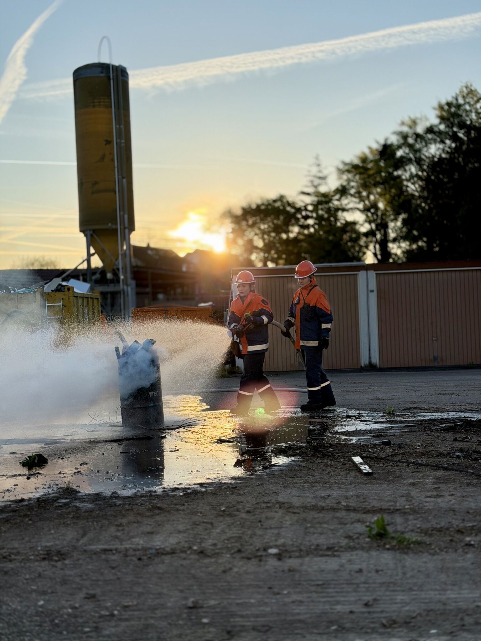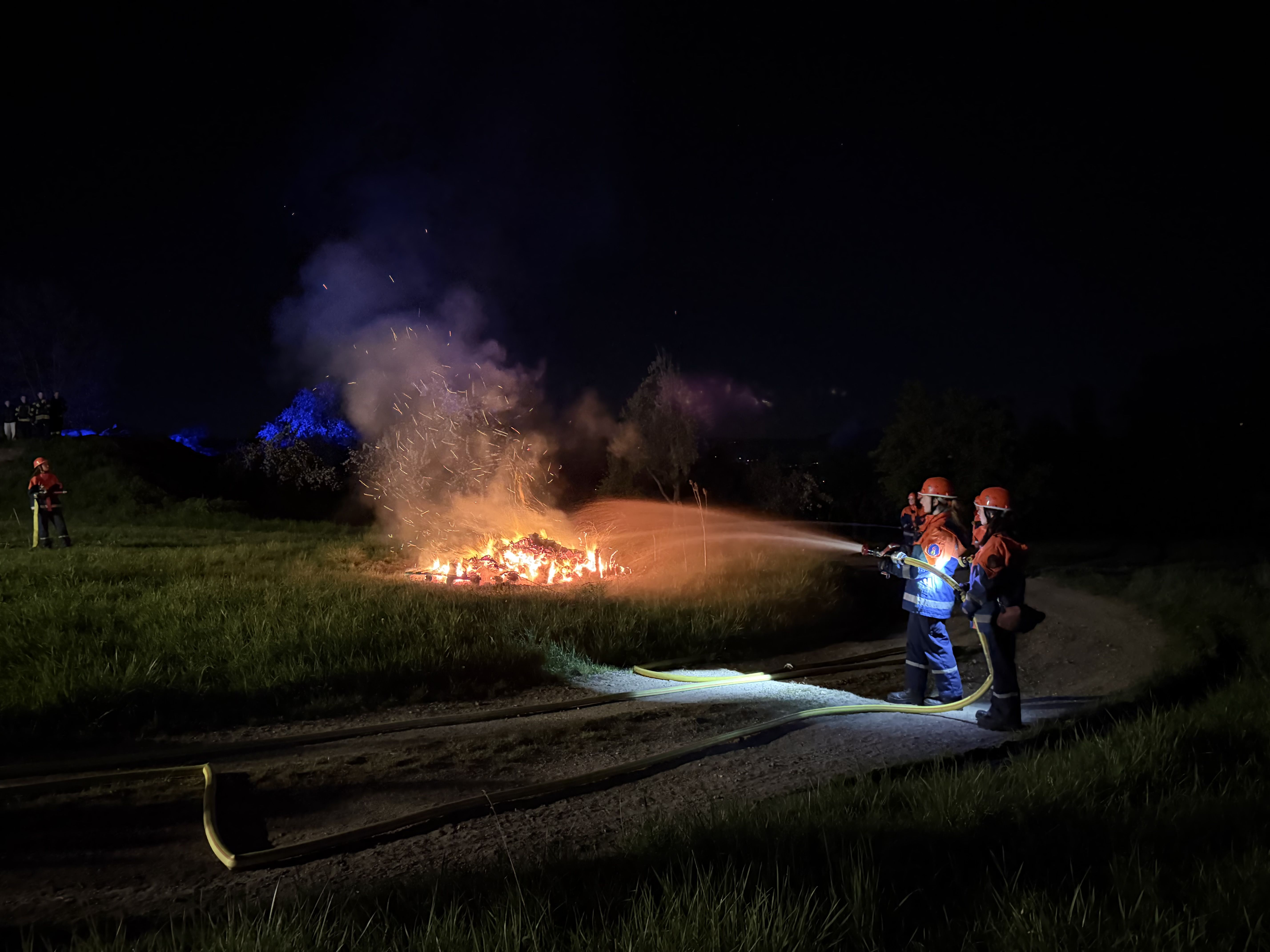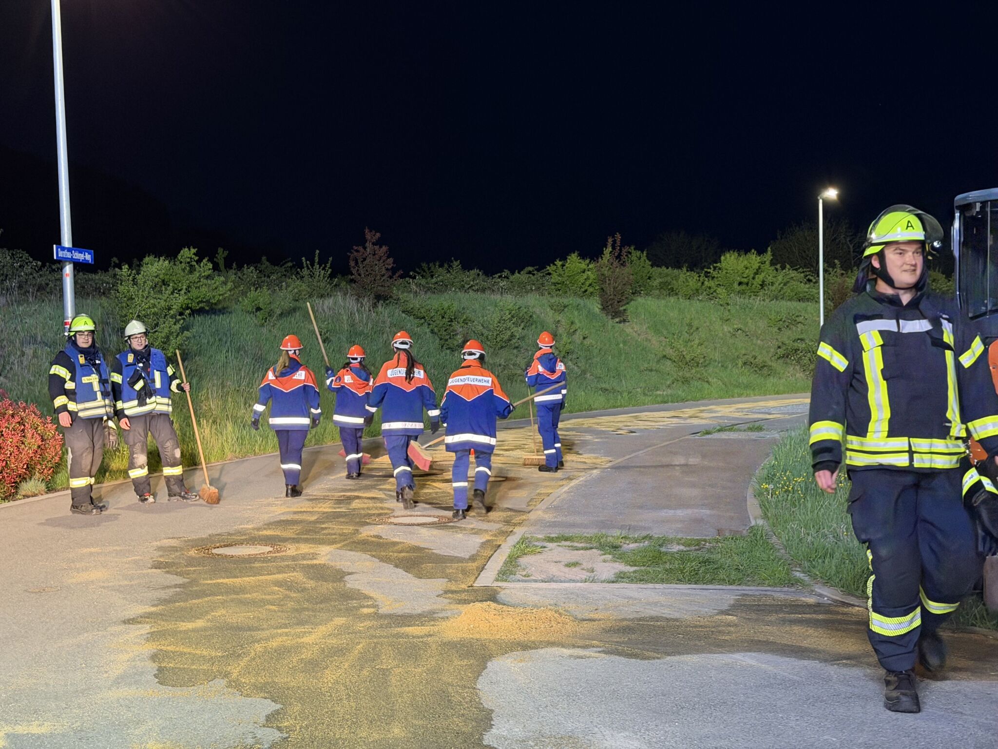Ein weiterer Einsatz war ein Hüttenbrand gegen 0:30 Uhr, bei dem schnelles Handeln gefragt war, um das Feuer unter Kontrolle zu bringen und weitere Schäden zu vermeiden. Zuvor rückten wir kurz vor dem Essen zu einer 150 m langen Ölspur aus. Außerdem gab es einen Gefahrguteinsatz mit einem LKW, aus dem Salzsäure ausgelaufen war. Dieser Einsatz war besonders anspruchsvoll, da wir hier vorsichtig und mit spezieller Ausrüstung arbeiten mussten. Dabei lernten wir, wie gefährlich solche Stoffe sein können und wie wichtig Schutzmaßnahmen sind.