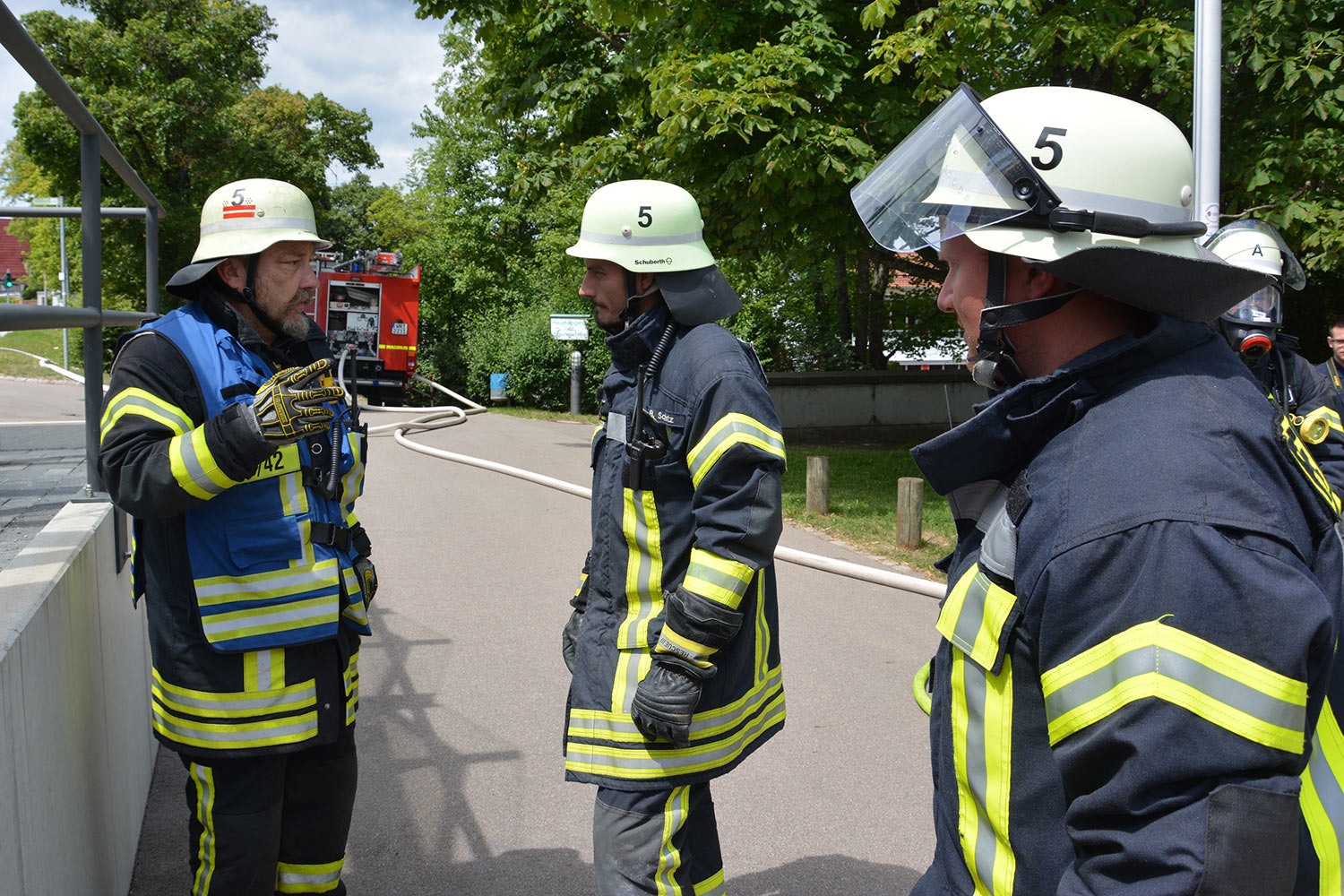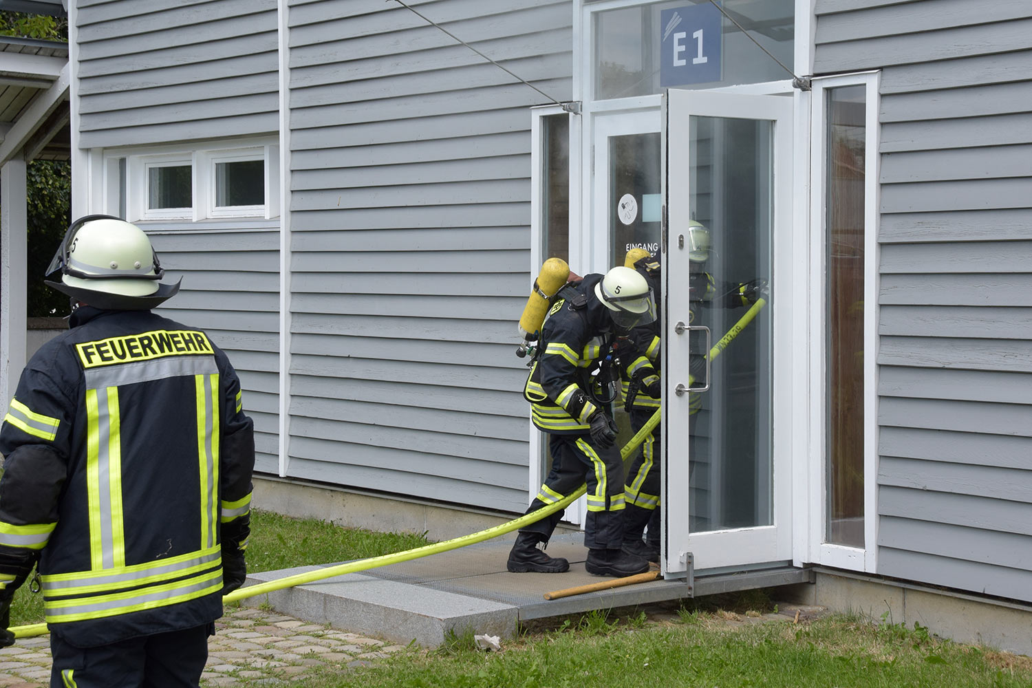 Um das Übergreifen des Brandes auf weitere Gebäudeteile zu verhindern wurden parallel zur Menschenrettung auf beiden Gebäudenseiten vorsorglich Riegelstellungen eingerichtet. Nach Übergabe aller geretteten Jugendlichen an den Rettungsdienst wurde der ursächliche Schwelbrand im Bereich der Photovoltaik-Anlage abgelöscht und das verrauchte Gebäude anschließend belüftet.