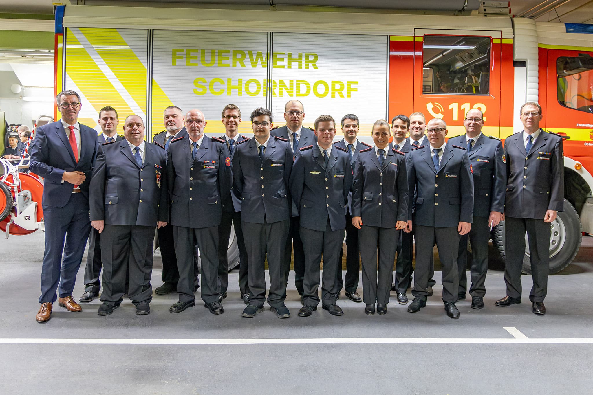 Neben Vertretern der Schorndorfer Feuerwehrabteilungen konnte Lämmle zahlreiche Ehrengäste aus Stadtverwaltung, Kommunalpolitik und den Schorndorfer Blaulichtorganisationen im Feuerwehrhaus begrüßen. Auch eine Abordnung der befreundeten Feuerwehr Stadt Bad Kissingen nahm den weiten Weg auf sich.