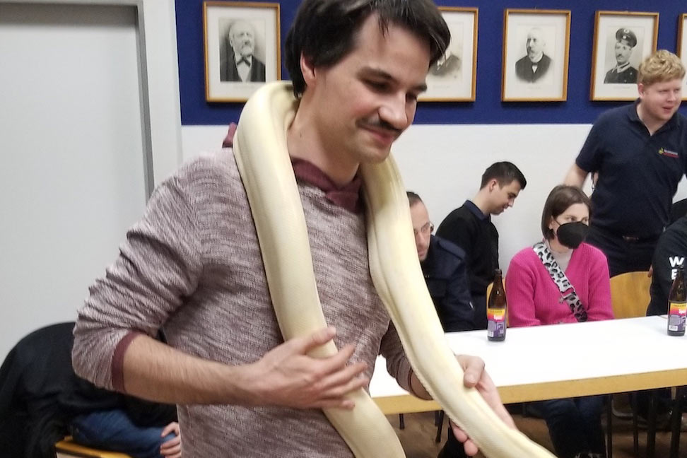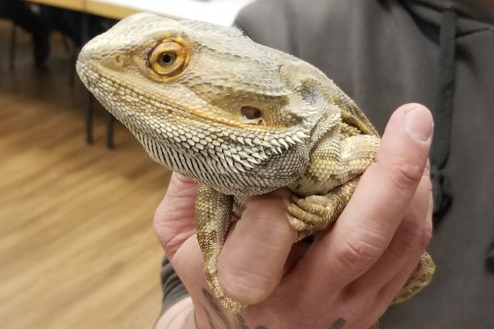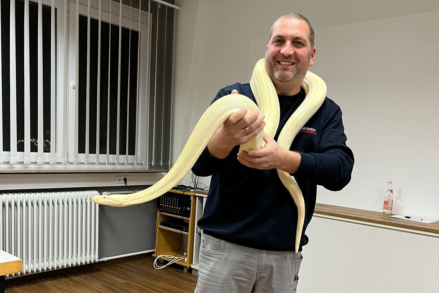 Ein Reptilienexperte hatte hierfür extra Schlangen, Spinnen, Skorpione und Bartagamen dabei. Er erklärte die Gefahren und die Gewohnheiten der Tiere. Zum Abschluss durfte jeder Feuerwehrangehörige ein Tier berühren, um die Angst ein wenig zu nehmen.