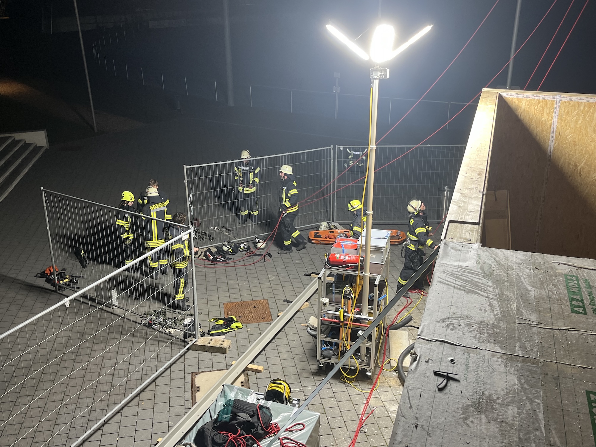 Im Mittelpunkt stand die realistische Vorbereitung auf den Ernstfall: die Rettung von Personen aus verschiedenen Höhen. Dazu nutzten die Einsatzkräfte sowohl das Gerüst als auch das Dach der Baustelle. Mit unterschiedlichen Methoden wie Toprope, Schiefer Ebene und Flaschenzug wurden verschiedene Rettungsszenarien praktisch erprobt.