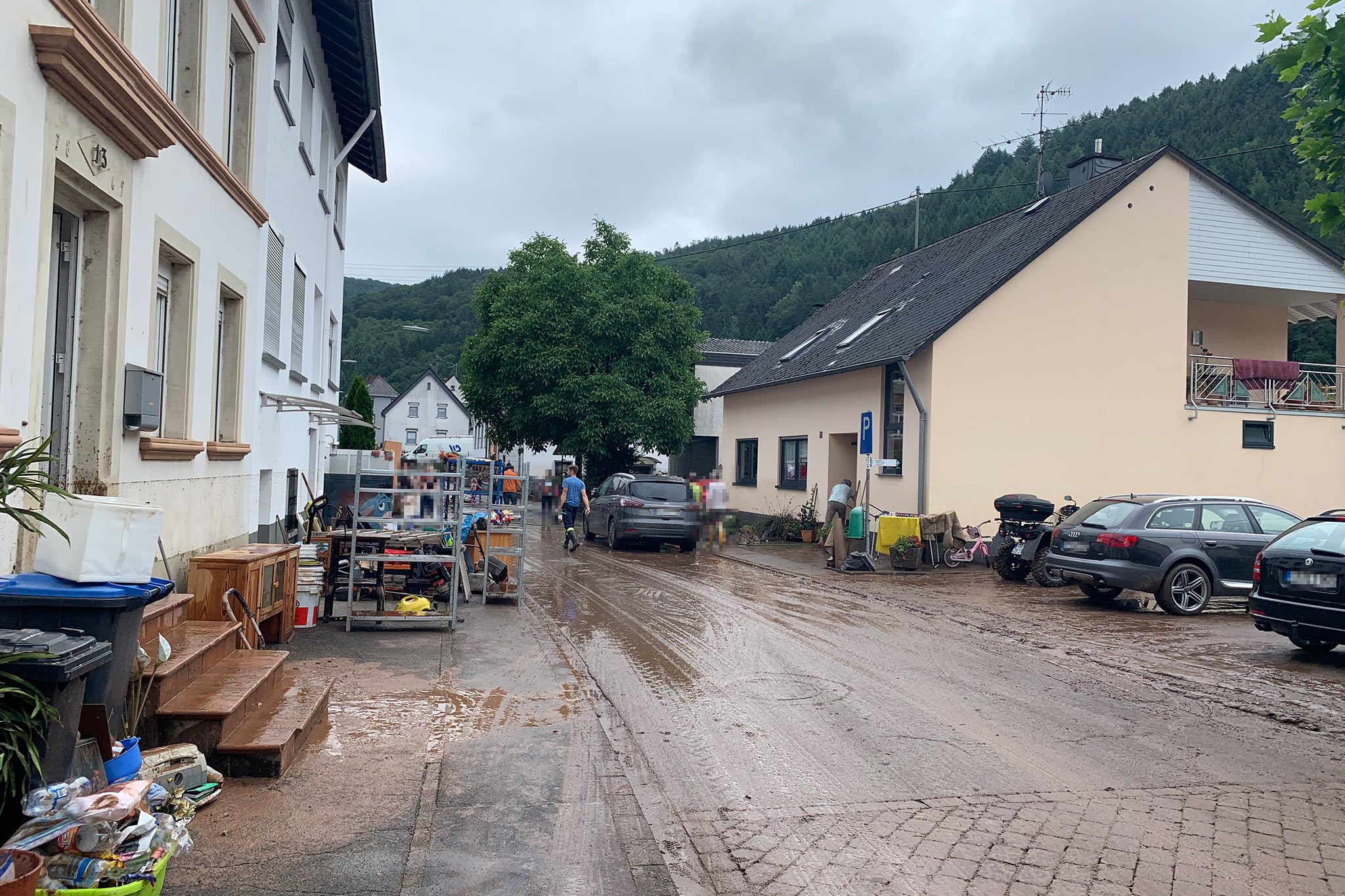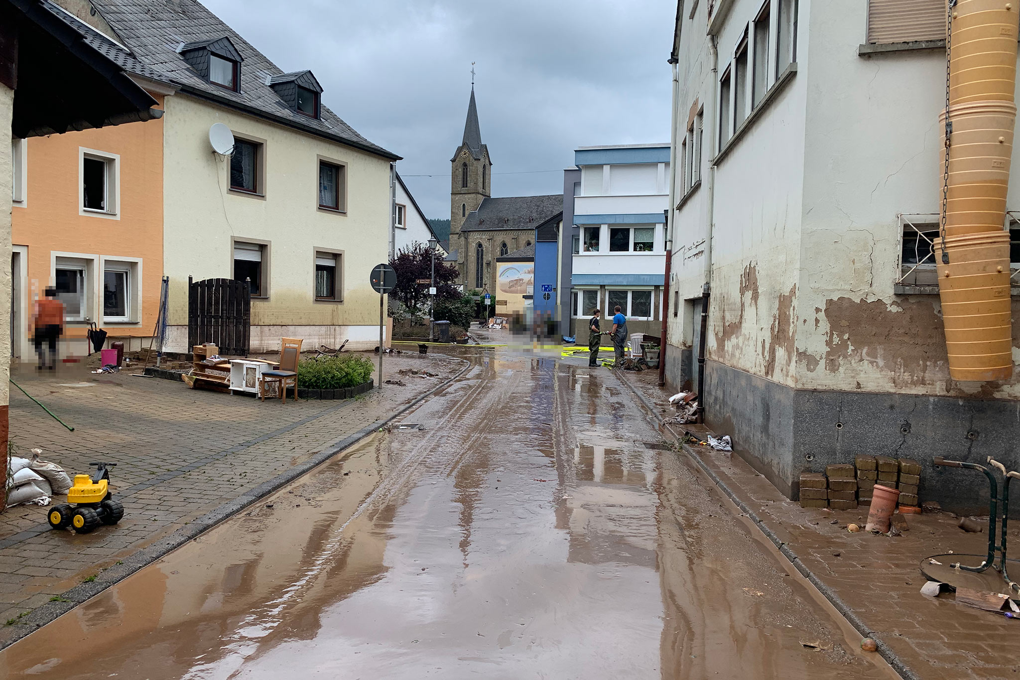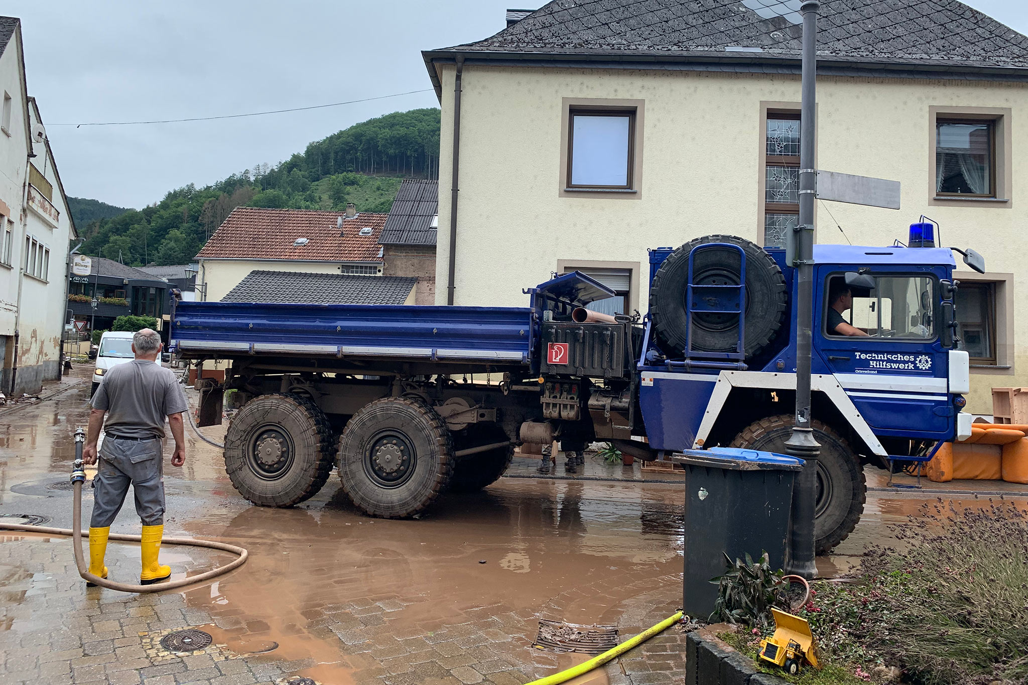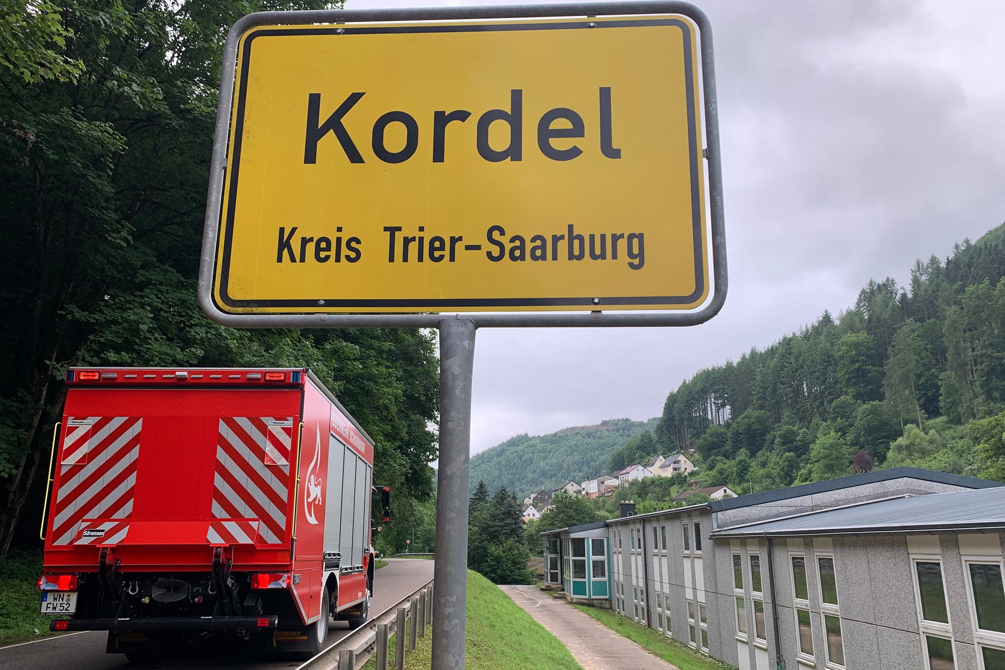 Seit Freitagmorgen ist der Hochwasserzug in Kordel im Landkreis Trier-Saarburg eingesetzt und unterstützt dort die Aufräumarbeiten. Das Hochwasser hatte die Gemeinde hart getroffen. Sie war zeitweise von der Außenwelt abgeschnitten und die Trinkwasser- und Stromversorgung war unterbrochen. Mehrere Hundert Menschen mussten mit Booten in Sicherheit gebracht werden – unter anderem auch von der Bundeswehr.