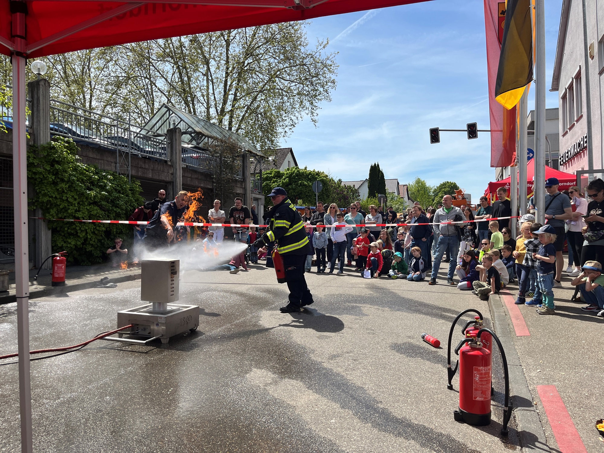 Auch die Jugendfeuerwehr präsentierte sich am Sonntag mit einem eigenen Stand. Neben Waffeln, Popcorn und Slush-Eis bot sie Geschicklichkeitsspiele wie Schlauchkegeln an. Insgesamt ein Spaß für Groß und Klein und eine gute Gelegenheit, die Technik der Feuerwehr spielerisch kennenzulernen.