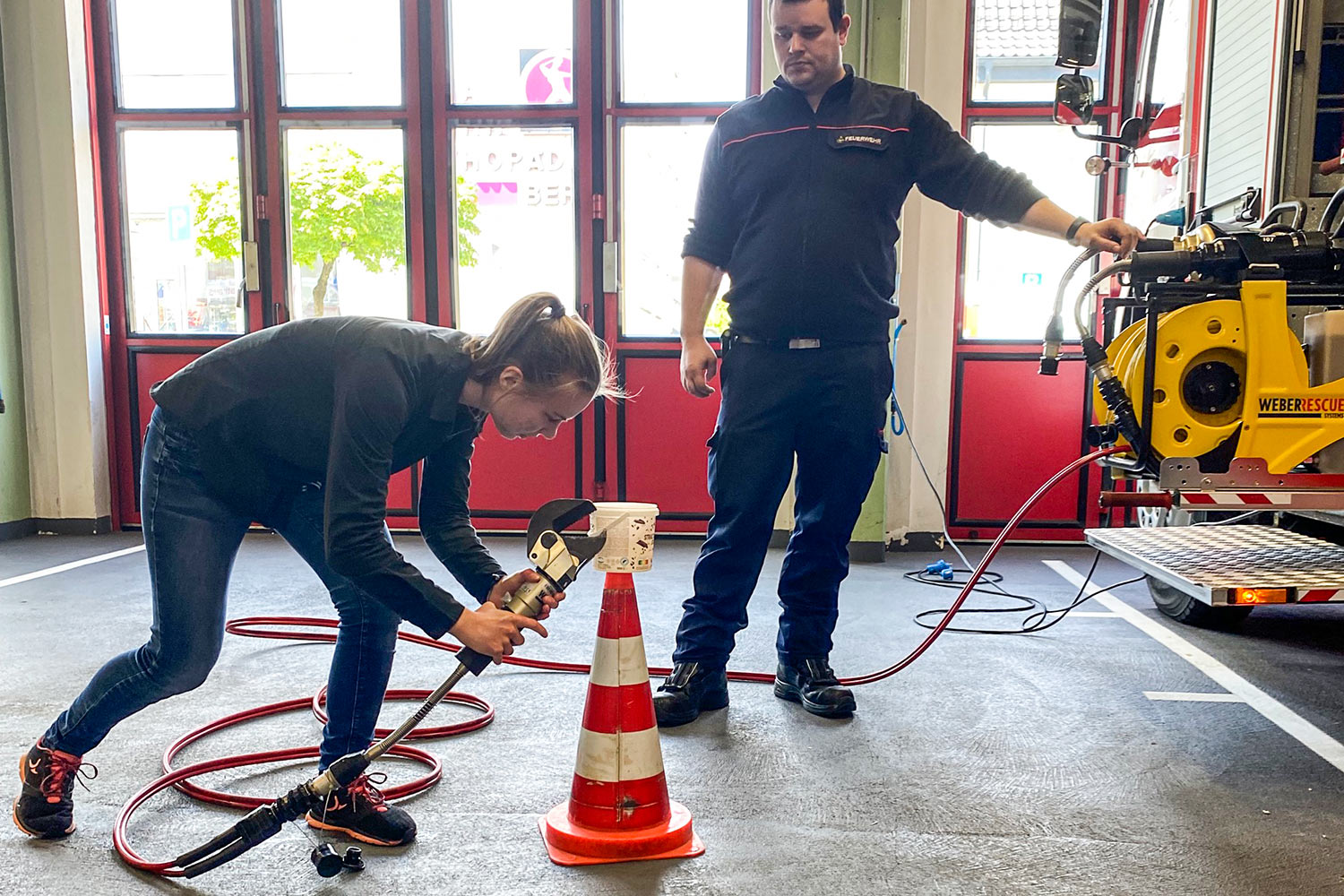 Die Mädchen durften in die Rolle einer Feuerwehrfrau schlüpfen und an verschiedenen Stationen die Tätigkeiten der Feuerwehr hautnah erleben. Sie besichtigten das Feuerwehrhaus und die hauseigene Schlauchwerkstatt sowie ein Löschfahrzeug. Außerdem absolvierten sie eine Geschicklichkeitsübung mit hydraulischem Rettungsgerät und durften selbst die Einsatzausrüstung einer Feuerwehrfrau anprobieren.