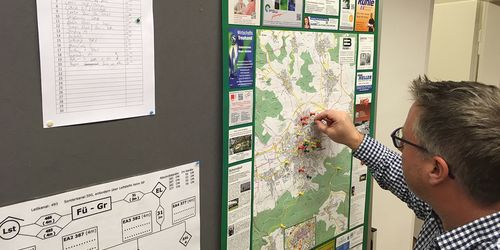 Angenommen wurde eine ausgelöste Brandmeldeanlage eines Betriebes, verursacht durch einen brennenden Müllcontainer an der Außenwand. Das Feuer hatte sich bereits auf das Firmengebäude und die angrenzende Wiese ausgebreitet.