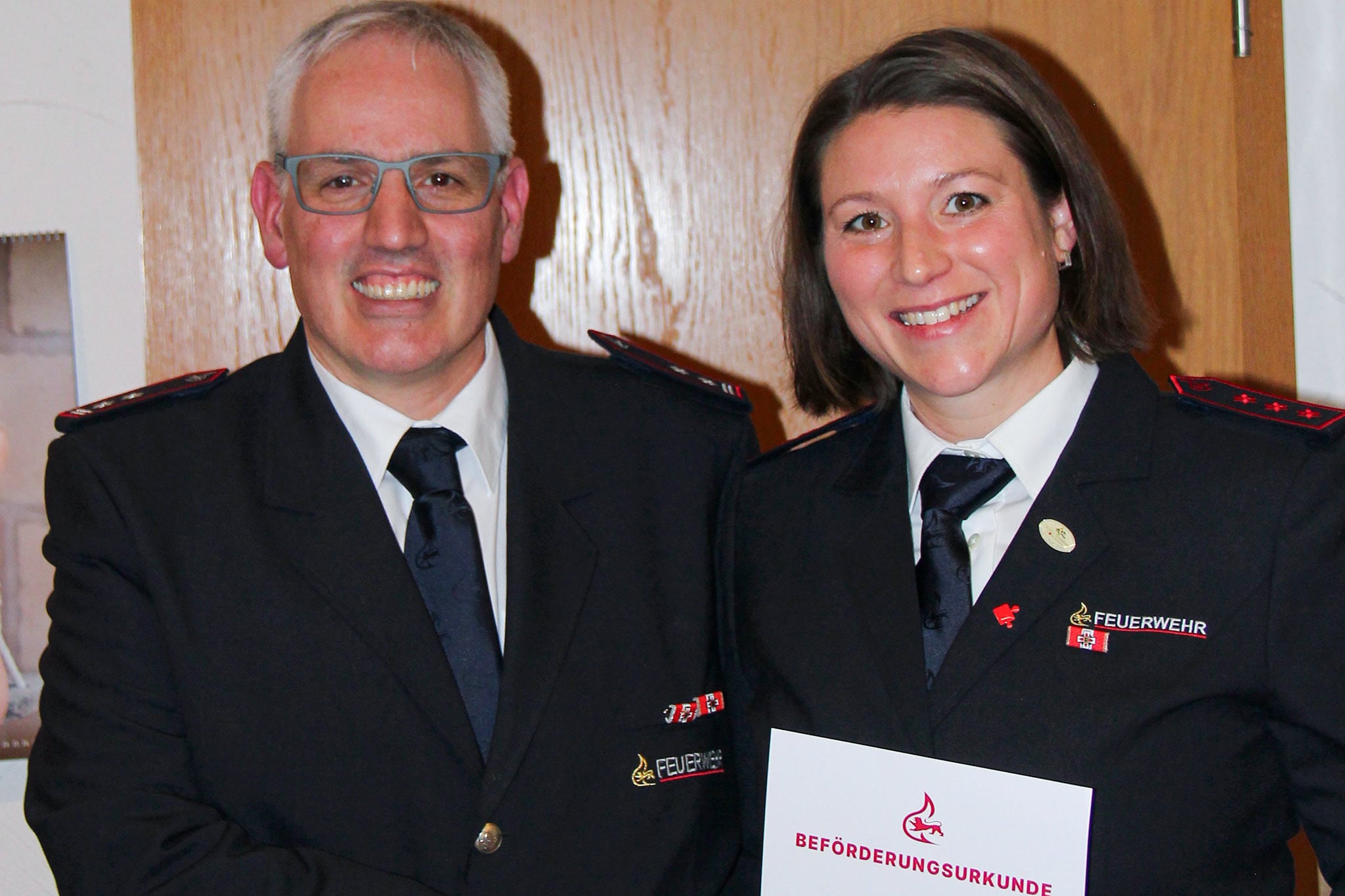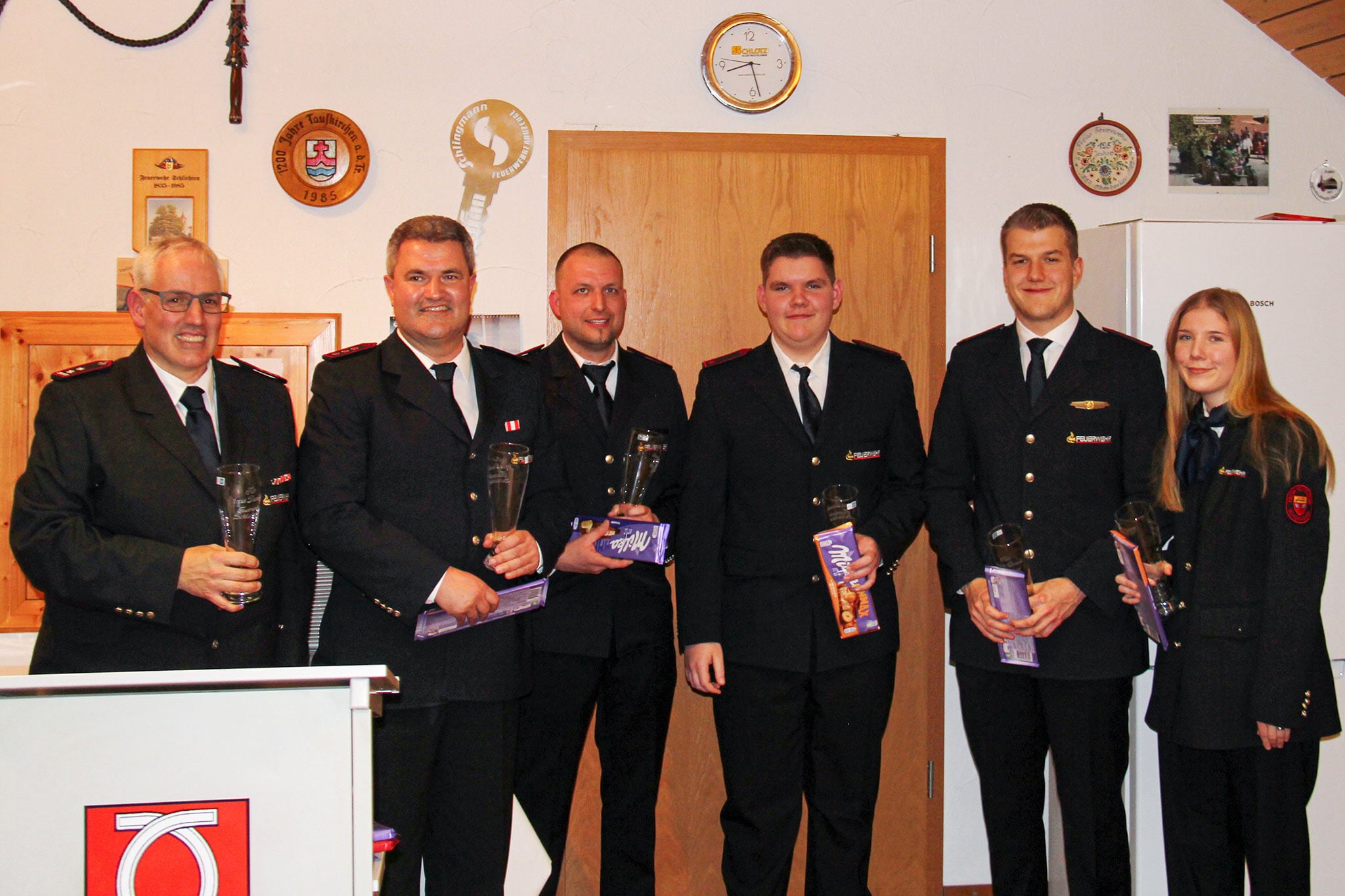 David Kaliss wurde nach dem Absolvieren des Grundlehrgangs mit integriertem Sprechfunklehrgang zum Feuerwehrmann befördert. Marina Brecht wurde zur Hauptfeuerwehrfrau befördert. Sascha Mang wurde nach dem Abschluss des Gruppenführerlehrgangs an der Landesfeuerwehrschule Baden-Württemberg zum Löschmeister befördert. Benjamin Auwärter zum Oberlöschmeister. Gerhard Unrath wurde mit Erreichen der Altersgrenze in die Altersgruppe übergeben. Er war rund 48 Jahre aktives Mitglied der Feuerwehrabteilung Schlichten und unterstützte in diesem Zeitraum die Feuerwehr sowie den Ort tatkräftig. Zum Dank wurde ihm sein Helm sowie ein kleines Präsent überreicht.