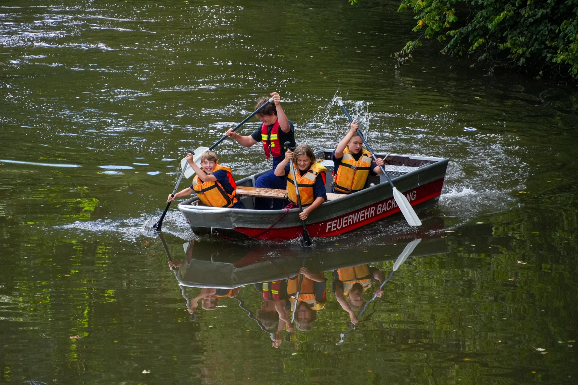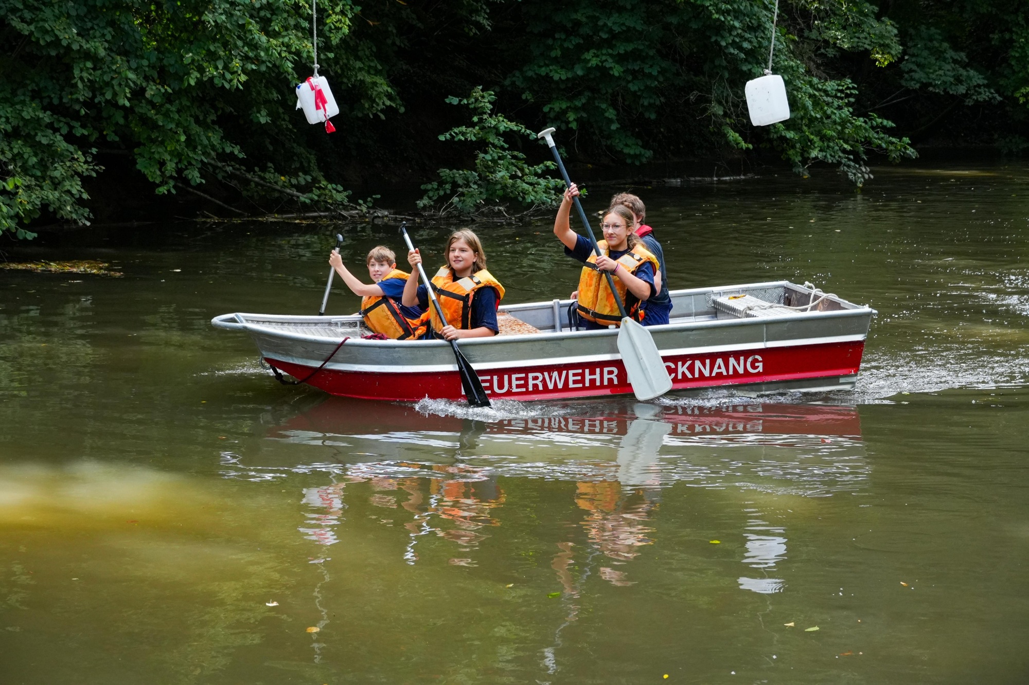 Das Rennen wurde mit zwei Alubooten der Feuerwehr Backnang ausgetragen. Pro Boot paddelten vier Personen eine rund 400 Meter lange Strecke: Nach ca. 200 Metern musste das Boot um eine an einer Brücke befestigte Steckleiter gewendet werden. Auf dem Rückweg wartete das Ziel – und dort galt es, einen über den Fluss gespannten Kanister abzuklatschen.