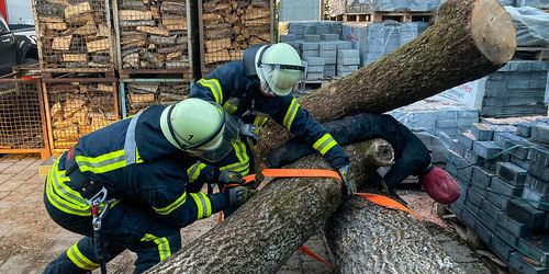 Aus diesem Grund stand bei den vergangenen Zugübungen der Abteilung Stadt genau dieses Thema auf dem Dienstplan. Auf dem Gelände des alten Baubetriebshofes wurden zwei Szenarien trainiert. An einer Station musste eine Last von mehreren Tonnen mit einem Mehrzweckzug bewegt werden – eine nicht ganz ungefährliche Aufgabe, weshalb hier ein besonderes Augenmerk auf eine sichere Durchführung gelegt wurde. An der zweiten Station wurde ein Verkehrsunfall simuliert, bei dem ein Fahrzeug auf die Seite gekippt war. Nachdem die Einsatzstelle gegen den fließenden Verkehr abgesichert war, musste das Fahrzeug mit unterschiedlichen Mitteln gegen Umkippen gesichert werden.