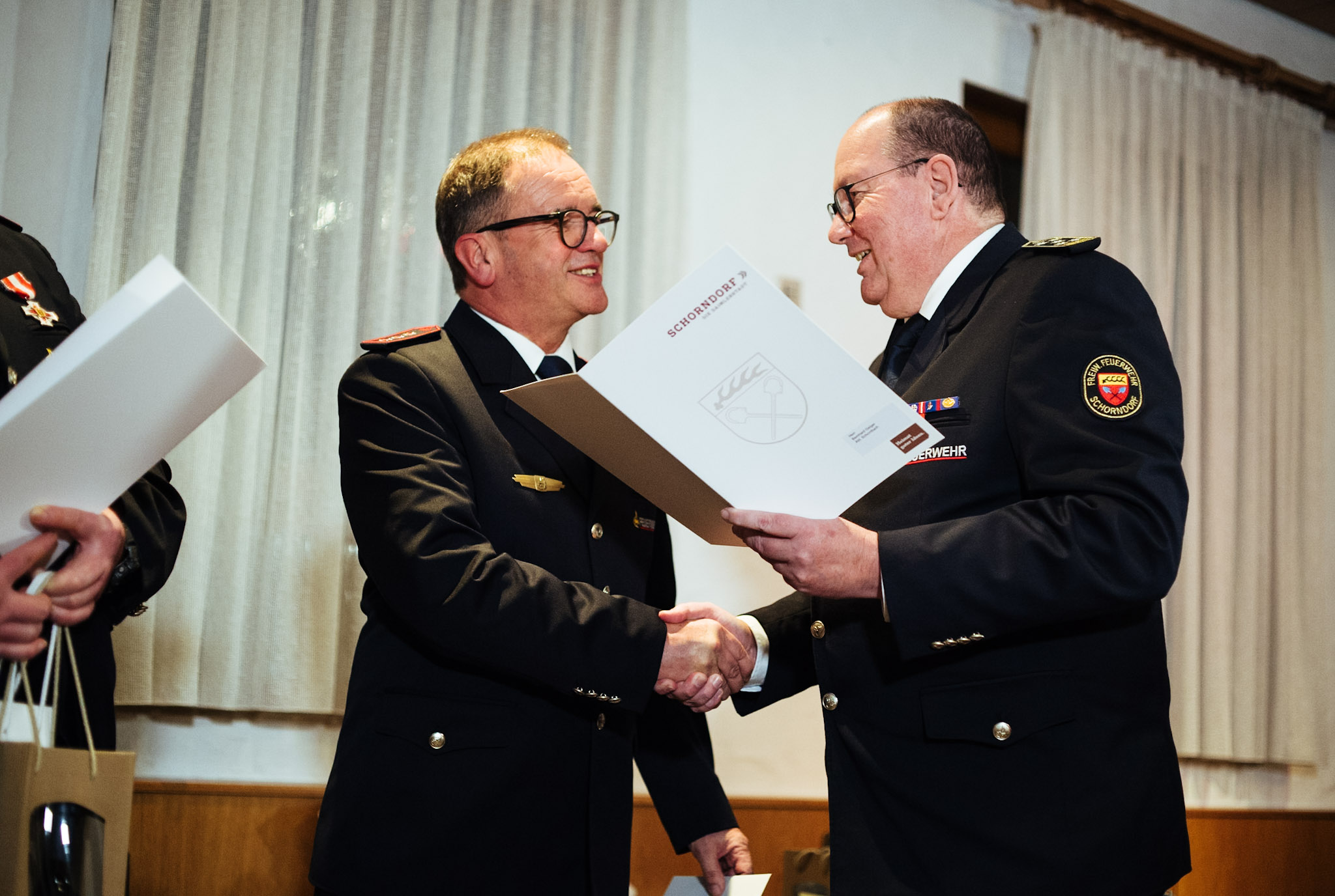 In seinem Rechenschaftsbericht konnte Abteilungskommandant Wüst über 15 Einsätze der Feuerwehrabteilung Schornbach im Jahr 2024 berichten. Besonders zu erwähnen ist der Großbrand bei der Firma Dusyma in Miedelsbach und das Starkregenereigniss von 2. auf den 3. Juni, das einen mehrere Tage andauernden Feuerwehreinsatz nach sich trug. Hier waren die Schornbächer Feuerwehrangehörige in Schornbach, Schorndorf, Miedelsbach und Rudersberg im Einsatz.