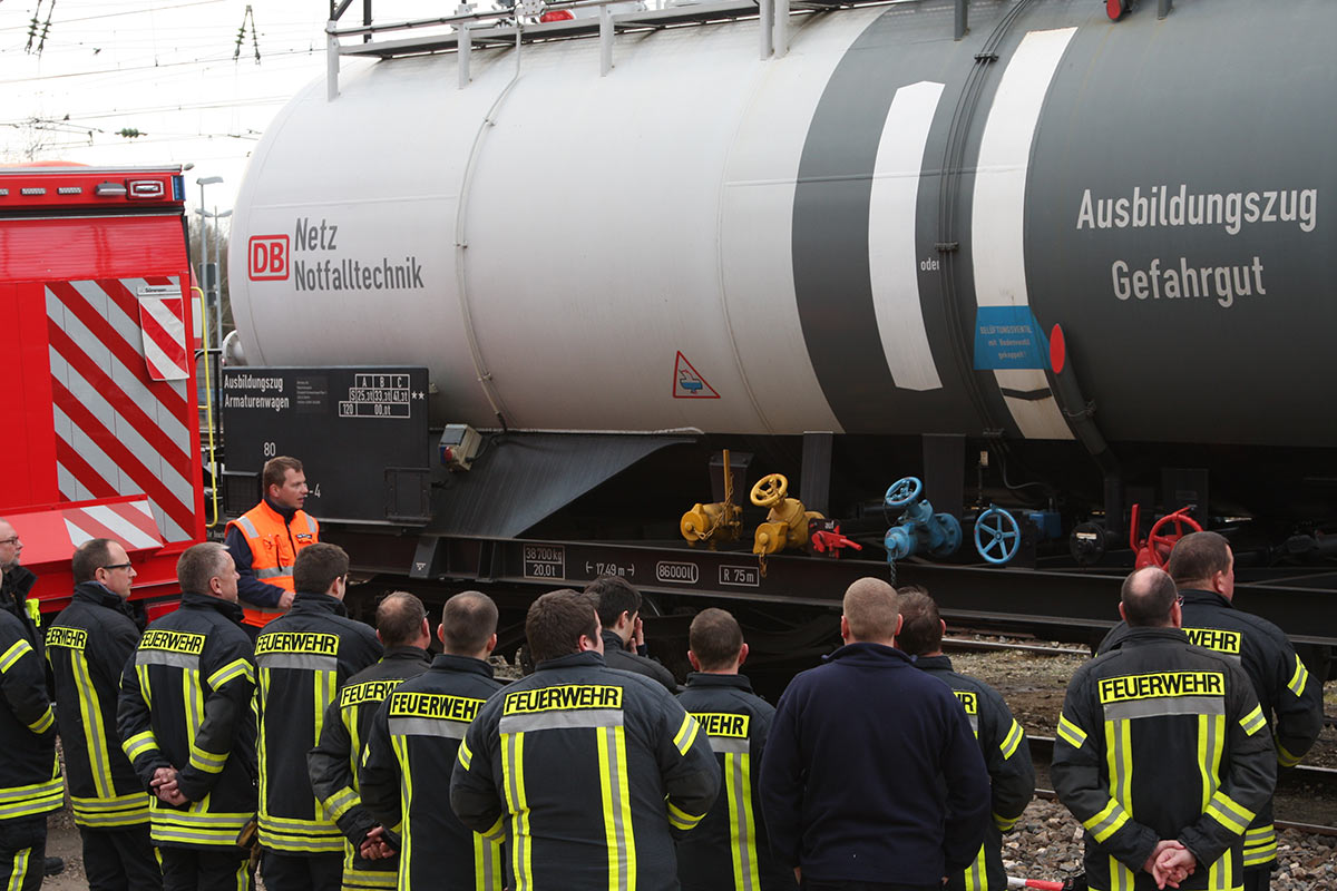 Von 26. bis 28. März machte der Ausbildungszug Gefahrgut der DB Netz AG Station im Rems-Murr-Kreis. Den Einsatzkräftem bot sich damit die einmalige Gelegenheit, den Umgang mit möglichen Leckagen an Kesselwagen zu trainieren.