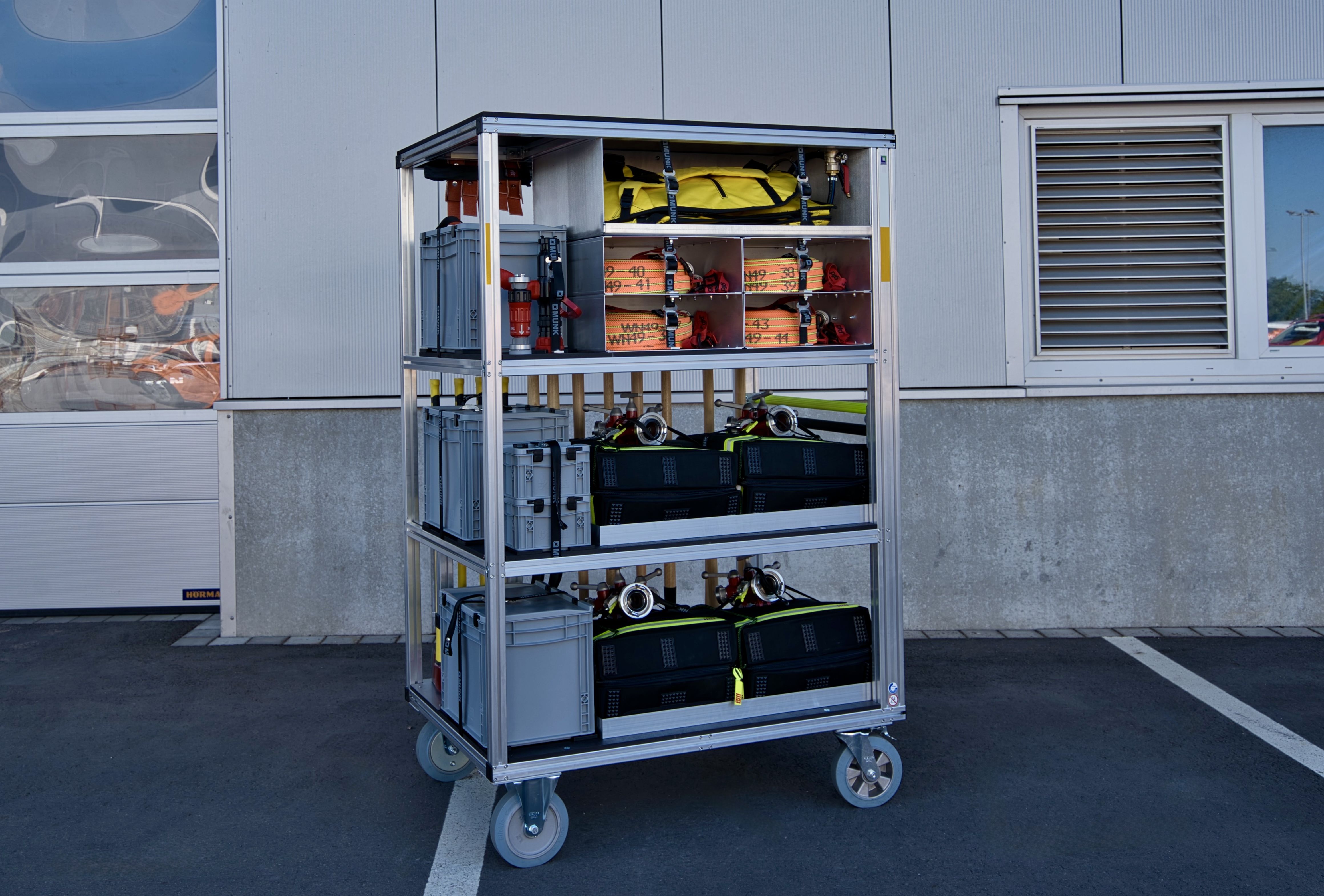 - Dieser Rollwagen enthält verschiedenstes Material für die Bekämpfung von Wald- und Flächenbränden.