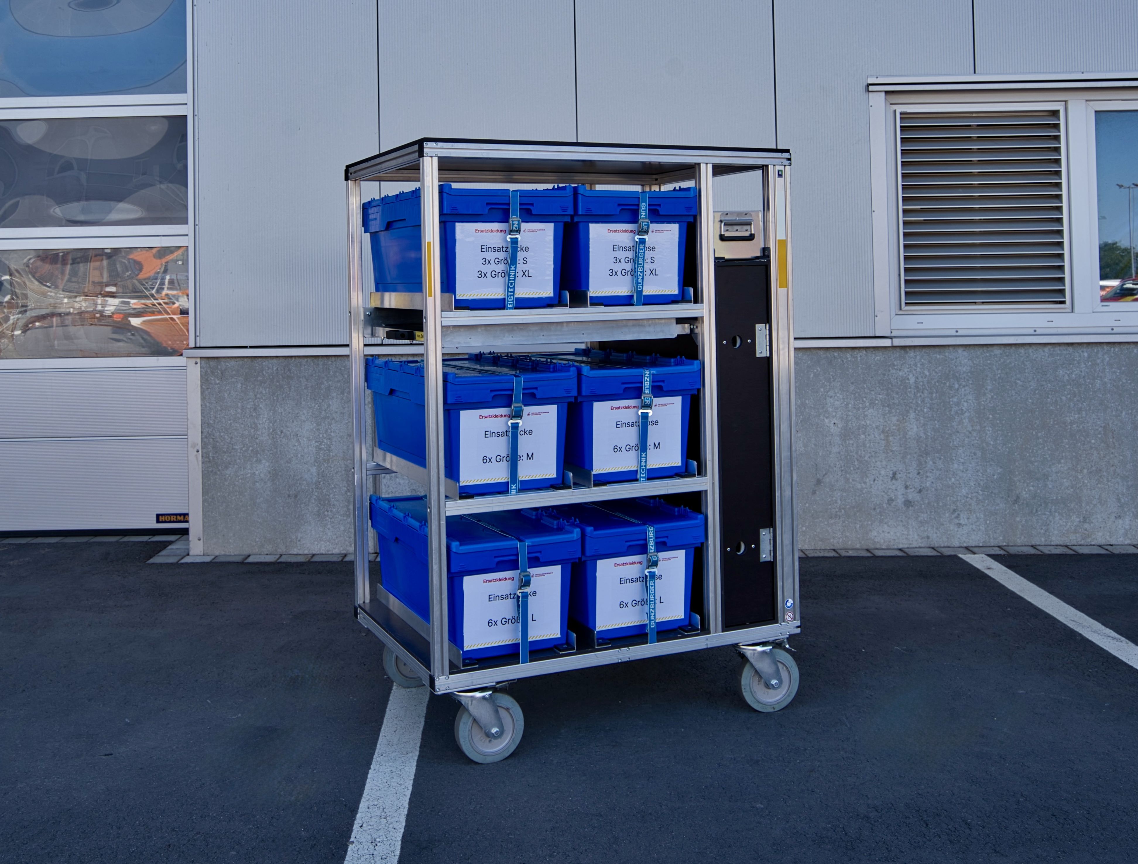 - RC 8/03 & 8/04 – Hygiene/Ersatzkleidung unterstützen Einsatzstellenhygiene mit 18 Sätzen Ersatzkleidung (Jacken/Hosen) für kontaminierte Einsatzkräfte.